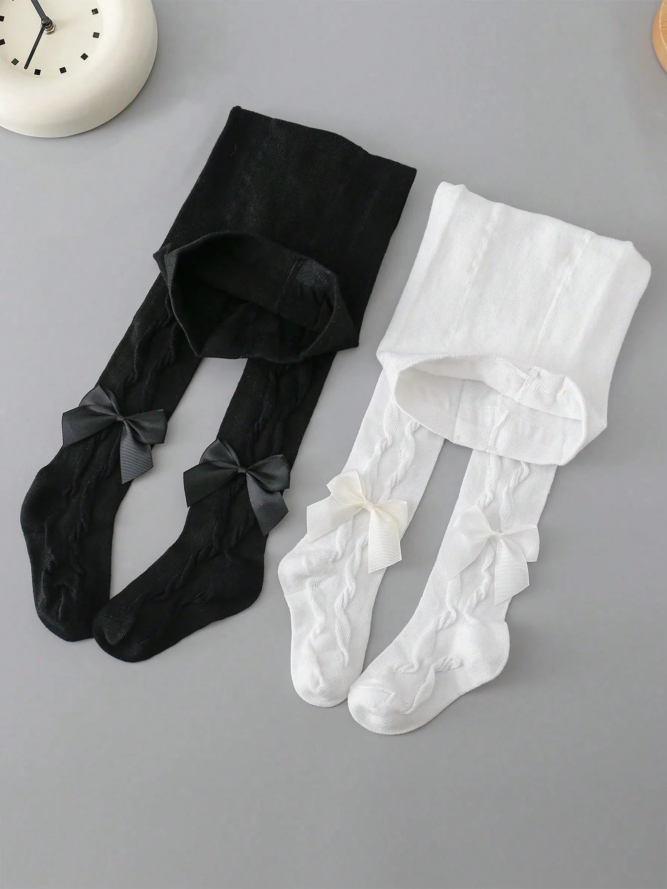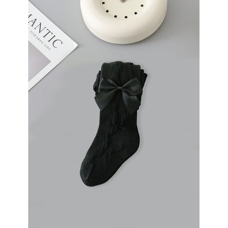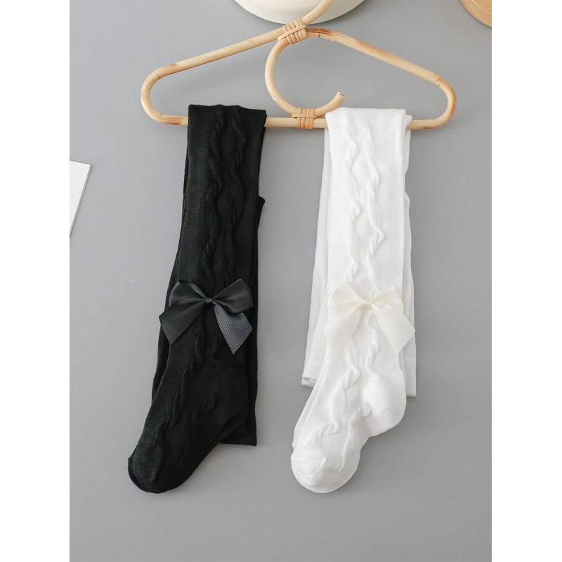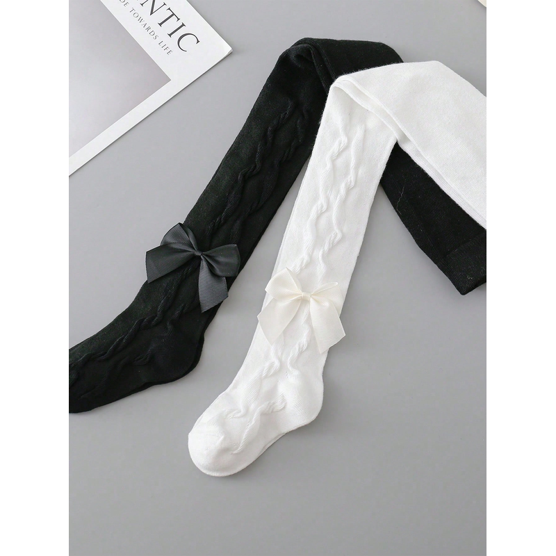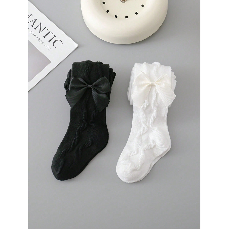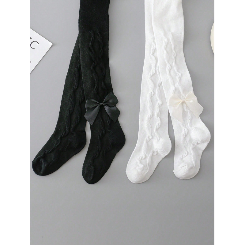 2 Pairs Pantyhose with Side Threaded Bowknots, Children's Soft Stretchy Pants, Cute Tights Kids Leggings for 1-12 Years Baby Girls