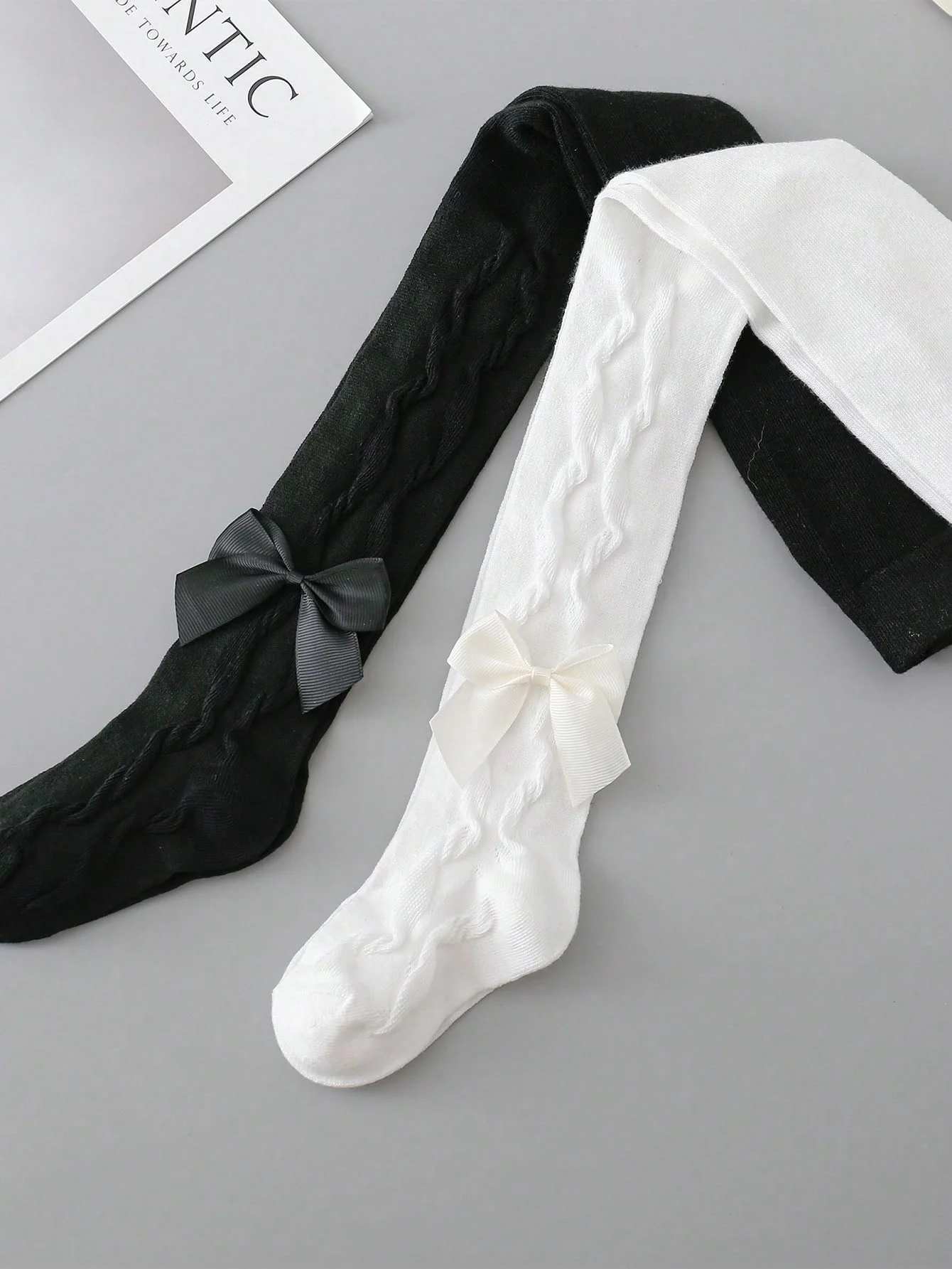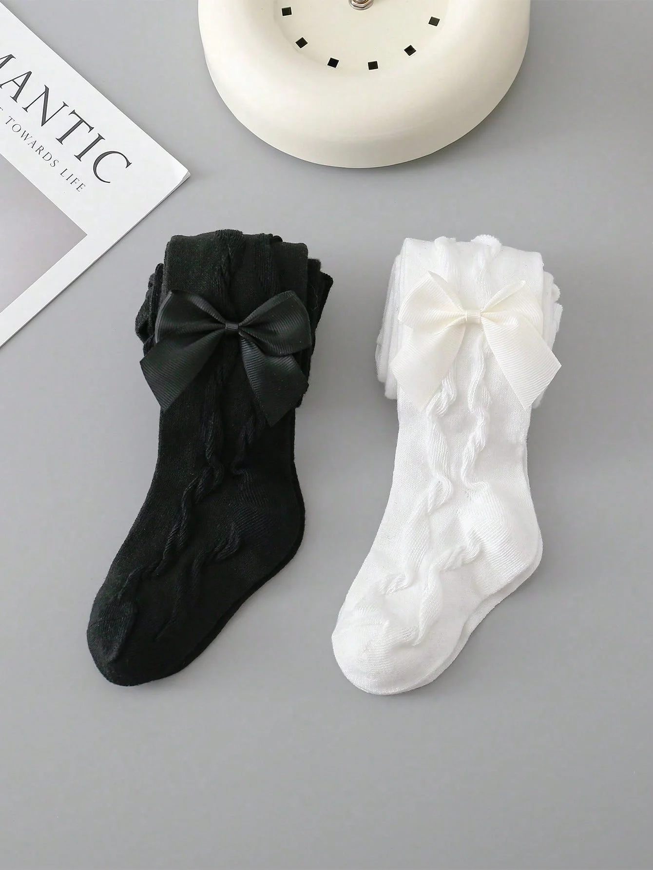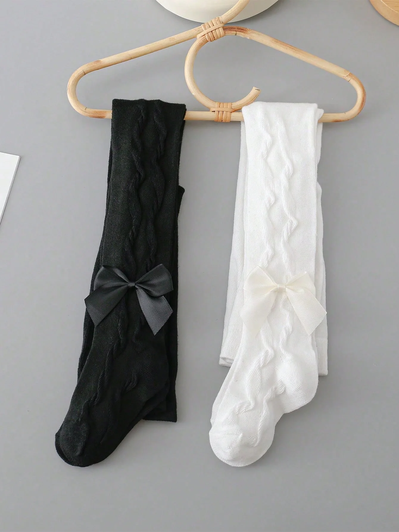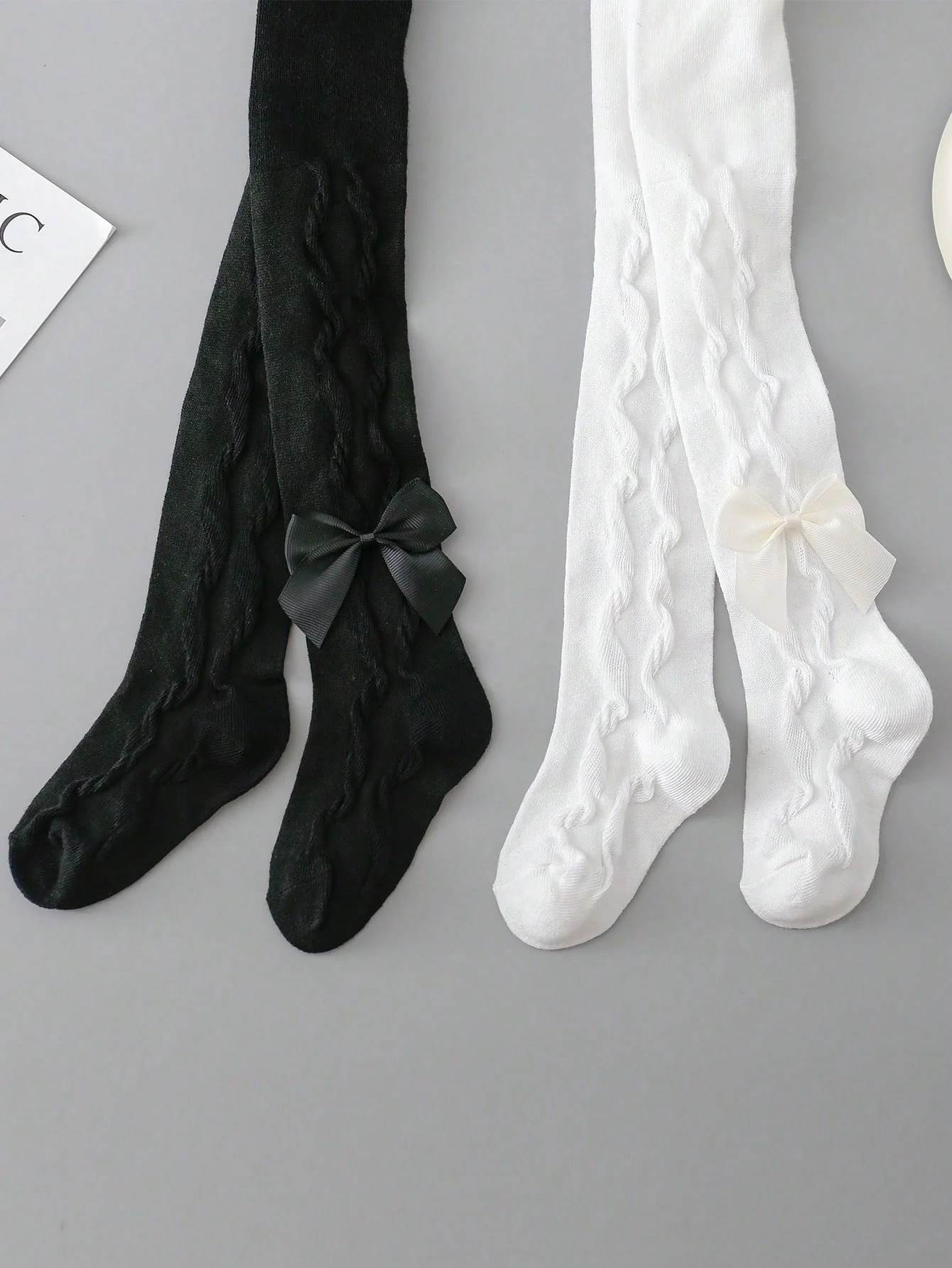 2 Pairs Pantyhose with Side Threaded Bowknots, Children's Soft Stretchy Pants, Cute Tights Kids Leggings for 1-12 Years Baby Girls