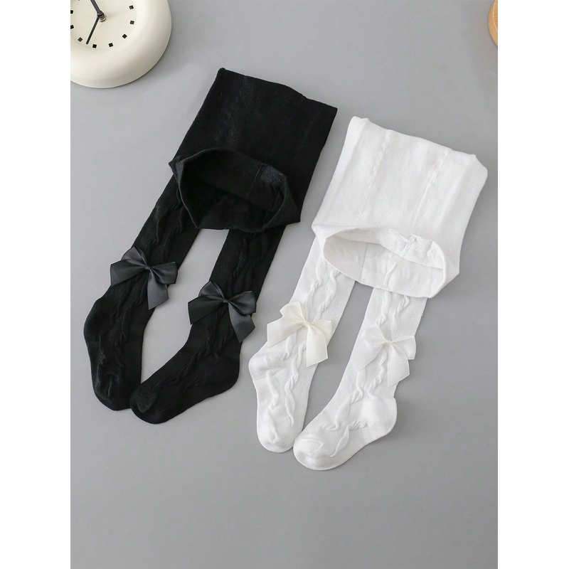 2 Pairs Pantyhose with Side Threaded Bowknots, Children's Soft Stretchy Pants, Cute Tights Kids Leggings for 1-12 Years Baby Girls