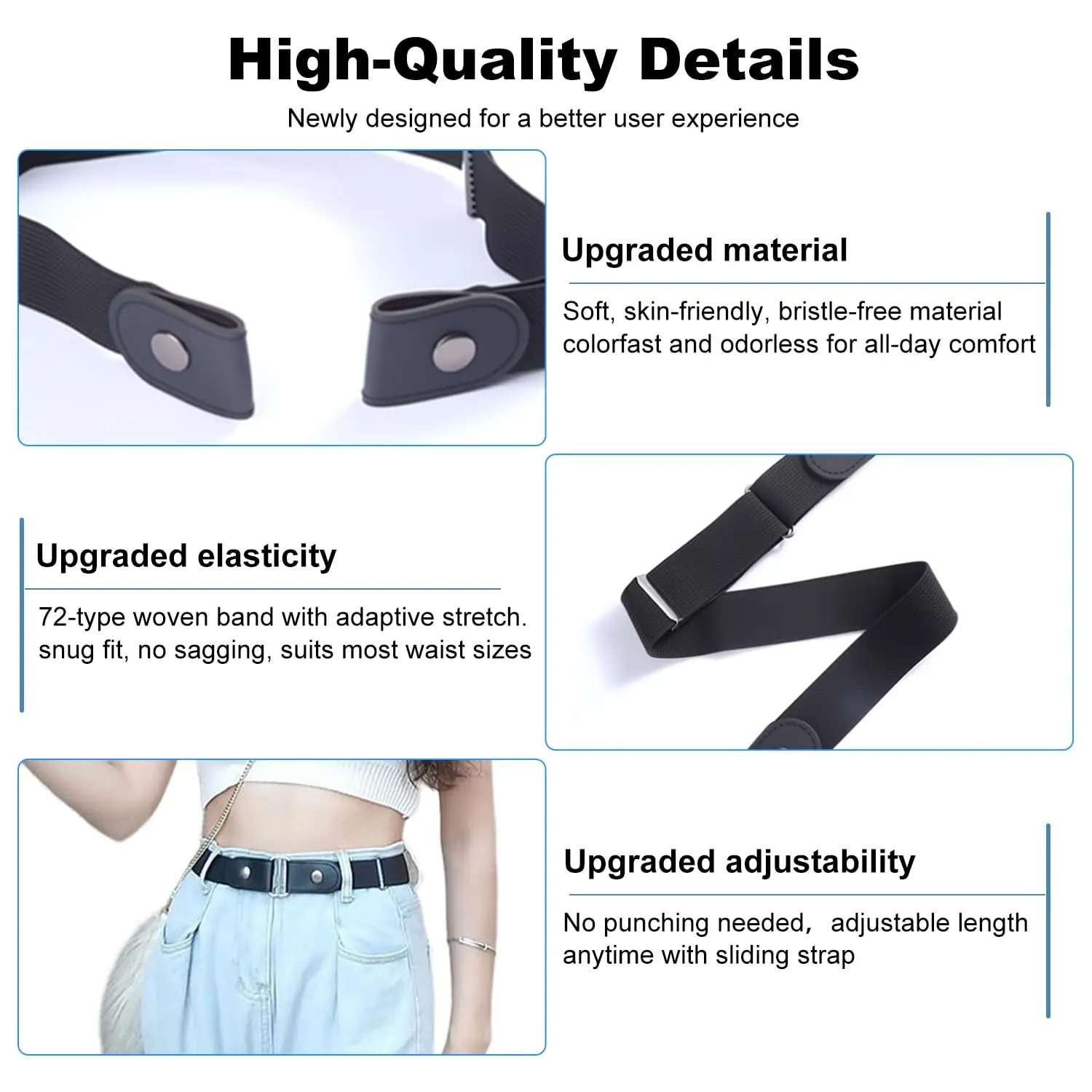 ✅ High-Elastic Material with Long-Lasting Hold - Made of premium elastic fabric with strong resilience, the belt offers excellent stretch and instant recovery. It won’t pinch, roll up, or sag even during daily activities like walking, bending, or working out. The durable material ensures long-term use without losing elasticity, standing up to years of wear.