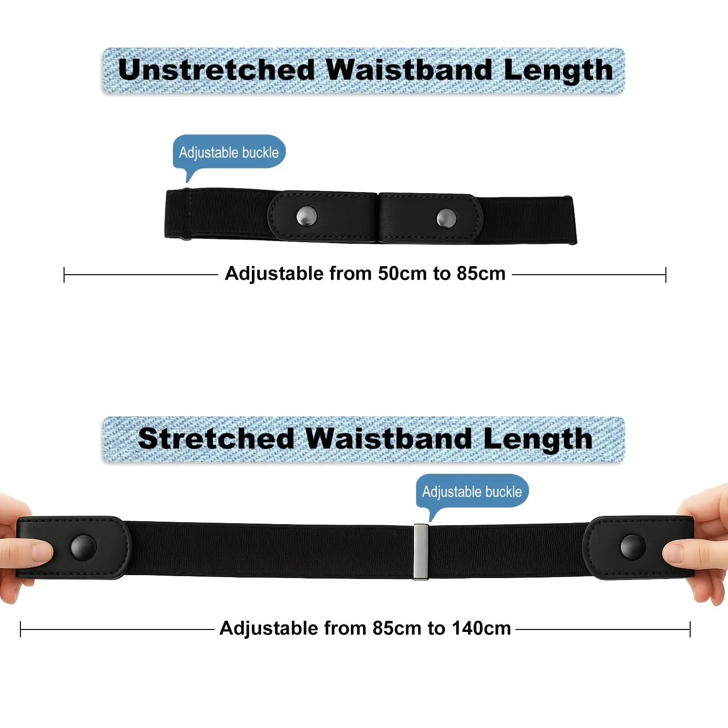 ✅ Wide Adjustable Range for All Waist Sizes - Equipped with a heavy-duty metal slider, the belt adjusts easily from 50cm to 140cm (19.7" to 55"). It fits slim, regular, and plus-size waists, suitable for teens, adults, and seniors. No need to punch extra holes—just slide the adjuster to get a customized fit that stays in place.
