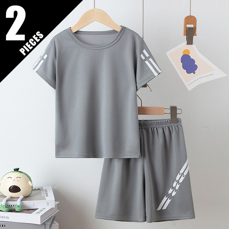 2-piece children's summer quick drying sports suit for boys and girls, handsome dinosaur print short sleeved top, black shorts