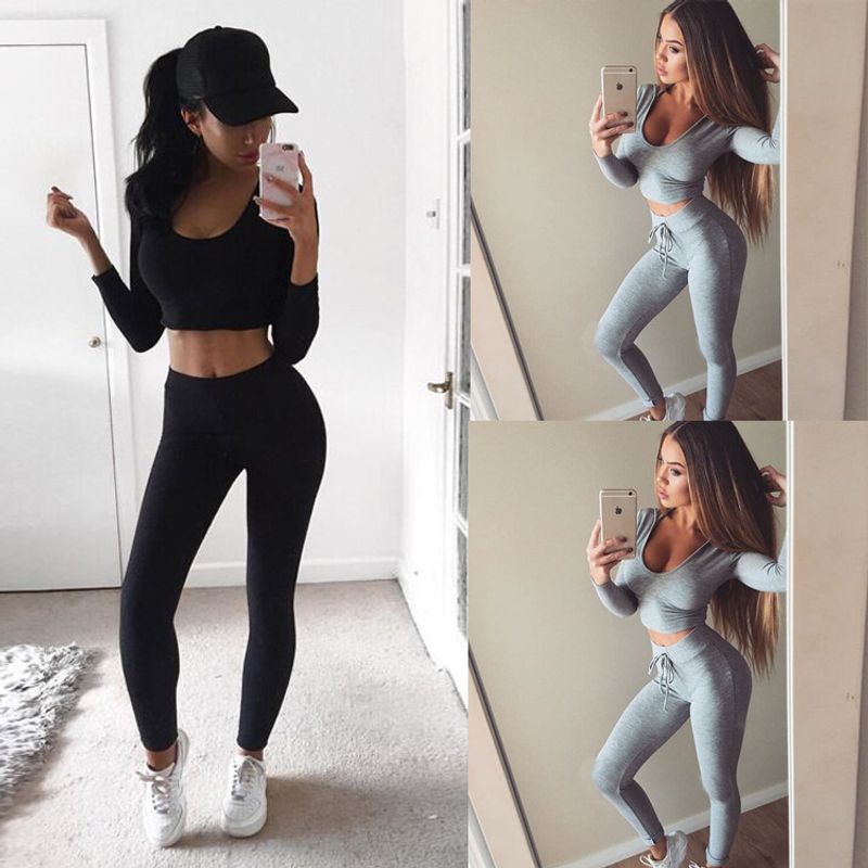 2 piece set women suit outfit two piece set crop top legging sweatpants set crop hoodie set female sweatshirt pants tracksuit gray L