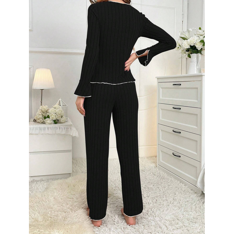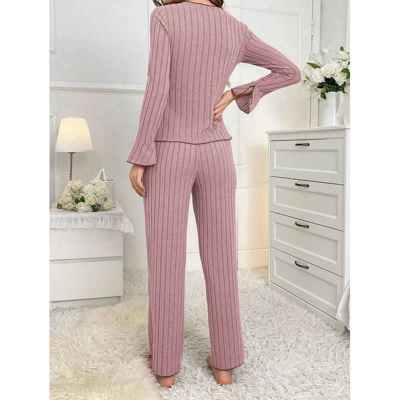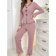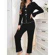 2-Piece Women's Autumn and Winter Pure Color Elegant Bow Women's Simple Long-Sleeved Pants Pajama Set Leisure home clothing