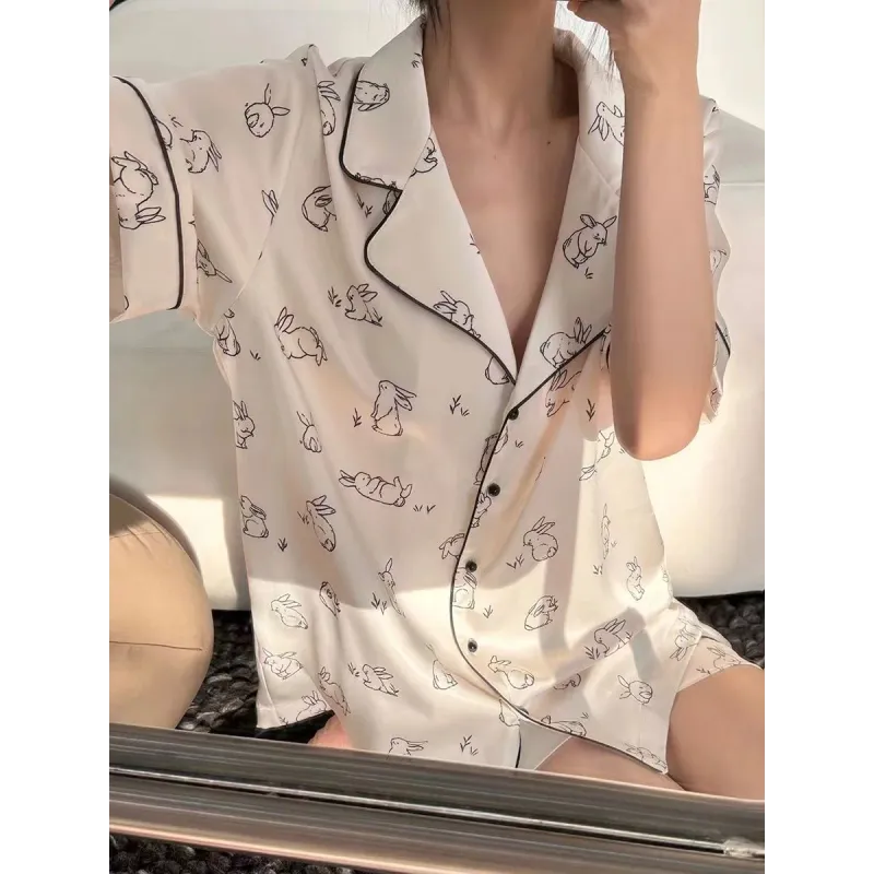 2 Pieces Print Sleepwear Faux Silk Satin Nightwear Pyjamas Fashion Casual Pajama Women Shorts Pajamas Set Ink Painting Outfits