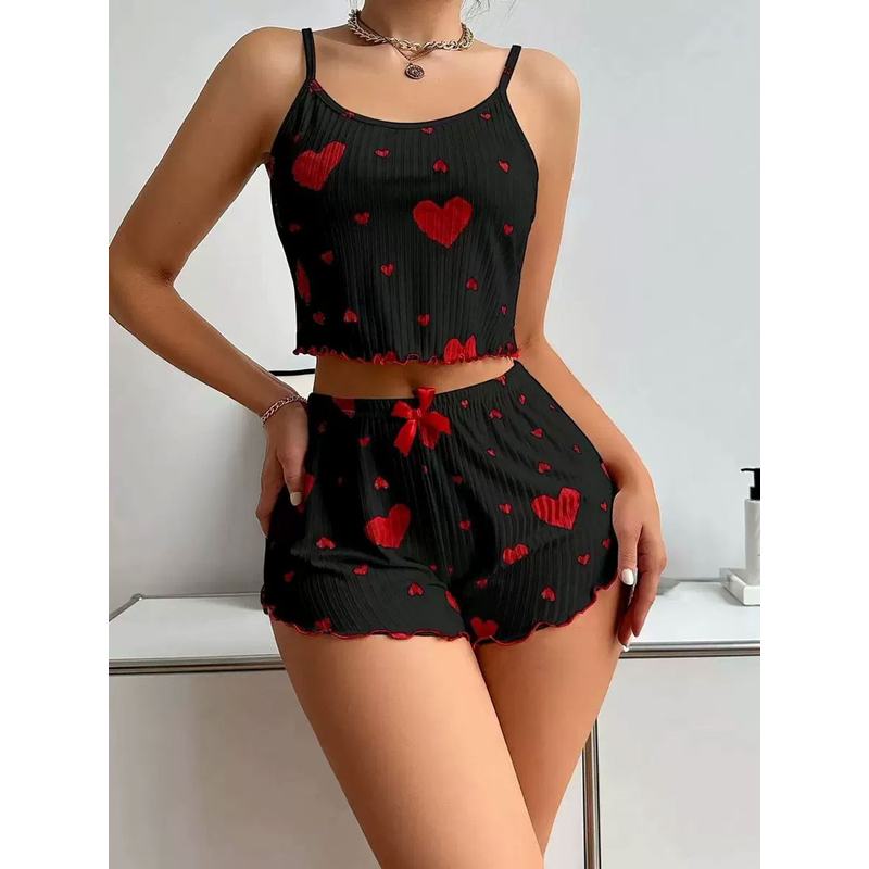 2 Pieces Set Women'S Pajama Shorts Suit Homewear Print Underwear Pijama Sexy Lingerie Camisoles Tanks Nighty Ladies Sleepwear