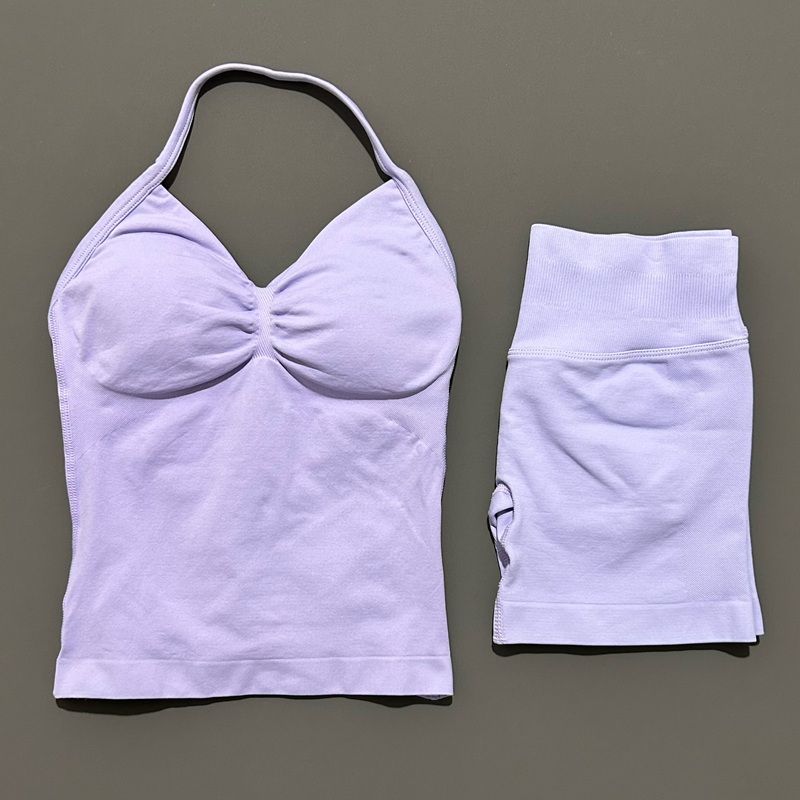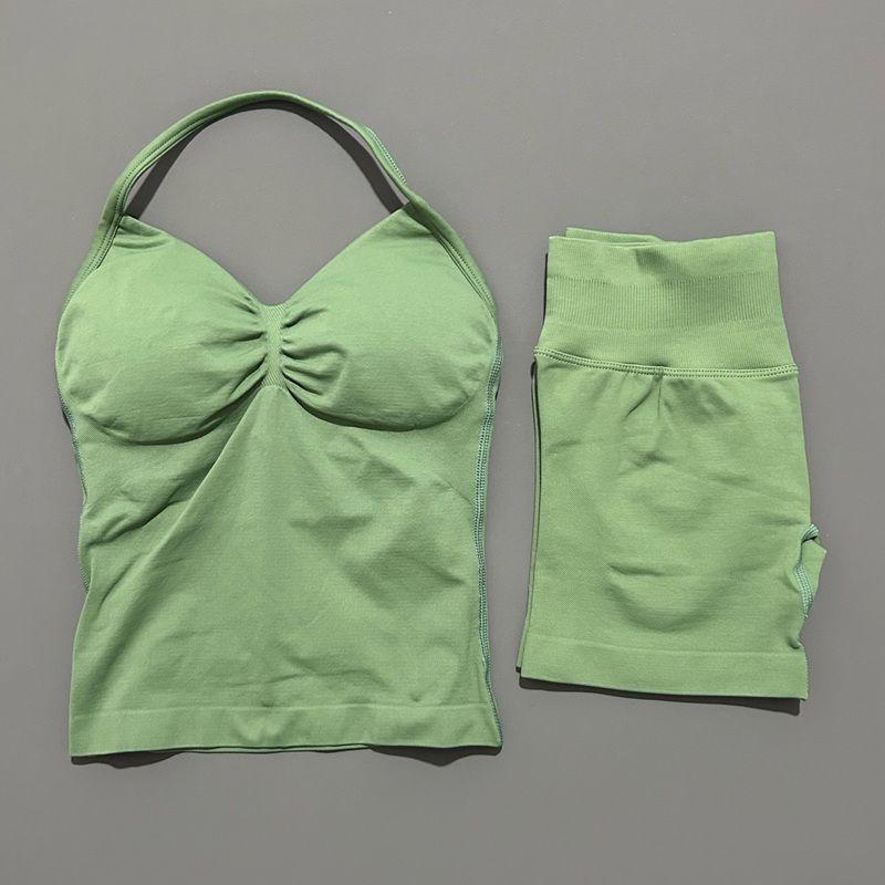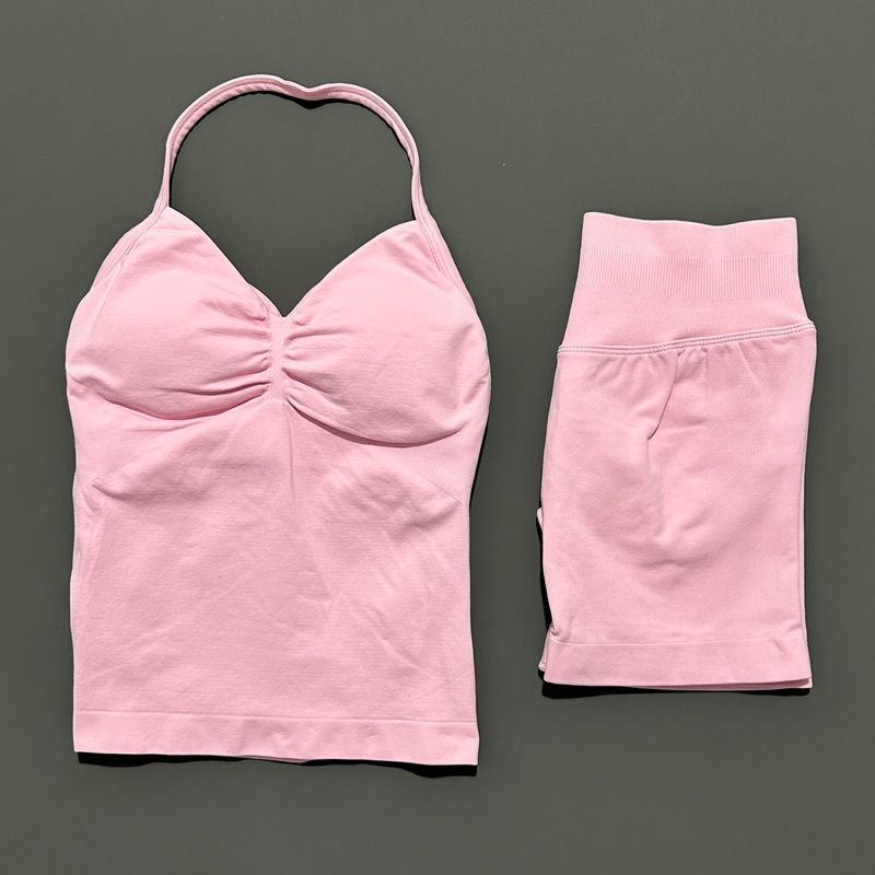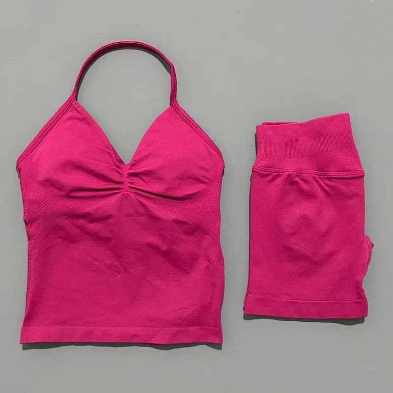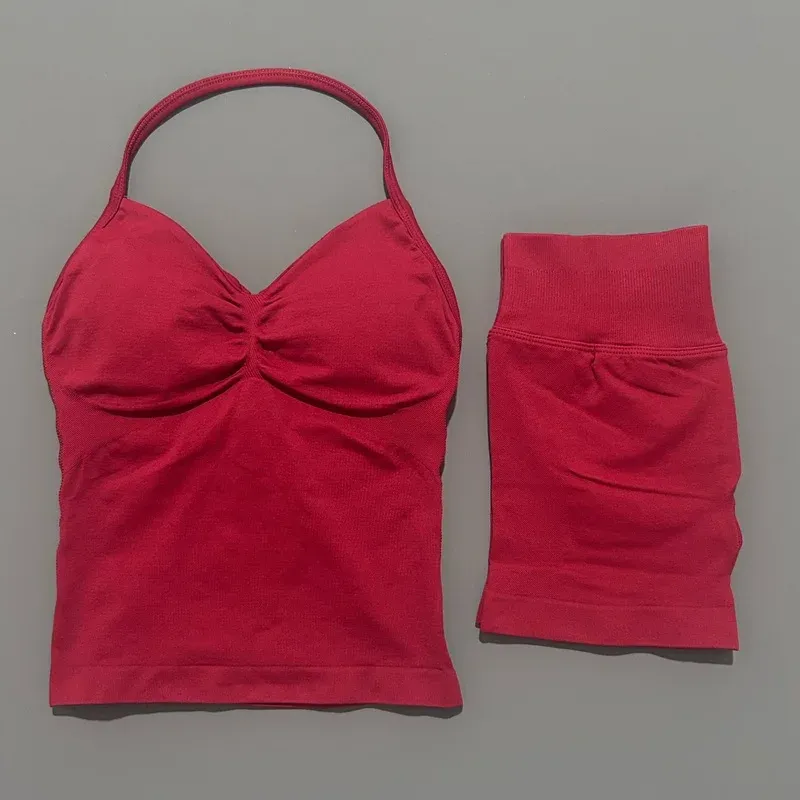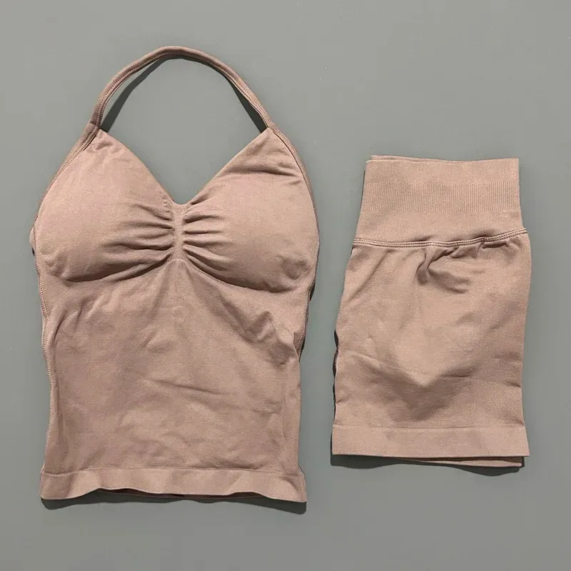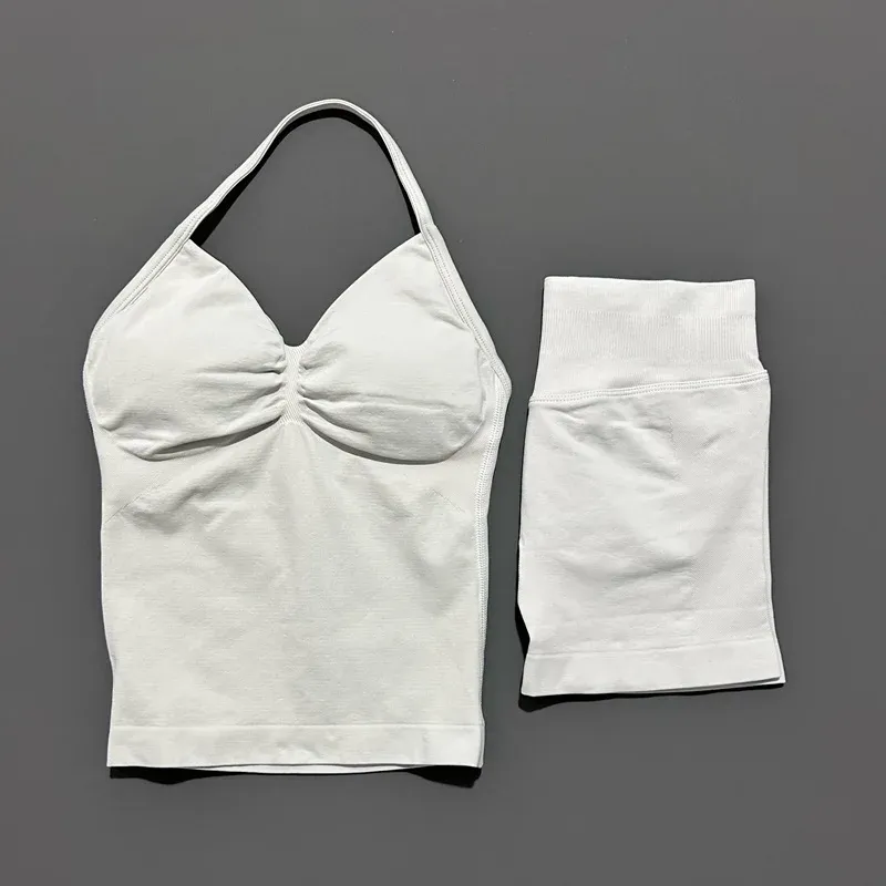 2 Pieces Sports Set Women Backless Tank Yoga Tops High Waist Scrunch Seamless Shorts Sport Gym Set Sportswear Workout Set