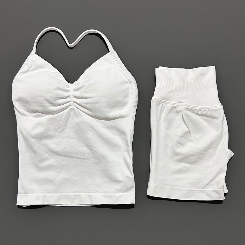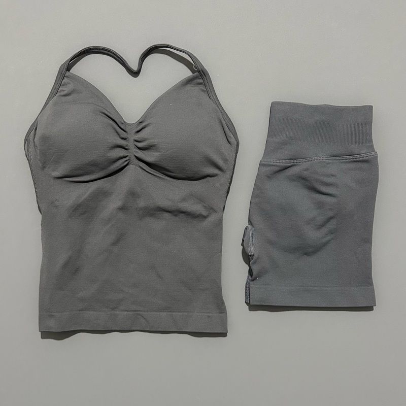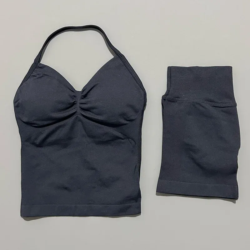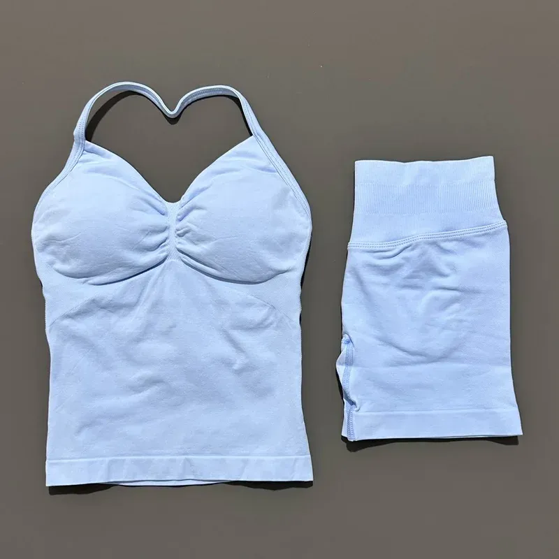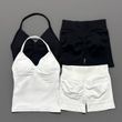 2 Pieces Sports Set Women Backless Tank Yoga Tops High Waist Scrunch Seamless Shorts Sport Gym Set Sportswear Workout Set
