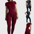 2 Pieces Sports Set Women Yoga Slim Fitness Active Top Suits Low Ribbed Band Gym Seamless Short Set Workout Leggings Sets