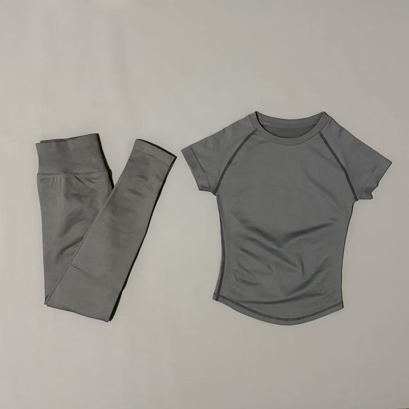2 Pieces Sports Set Women Yoga Slim Fitness Active Top Suits Low Ribbed Band Gym Seamless Short Set Workout Leggings Sets