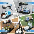 2 Tier Slide Out Under Sink Organizer with Hooks Large Capacity Space Saving Storage Rack for Kitchen Bathroom Cabinet Durable