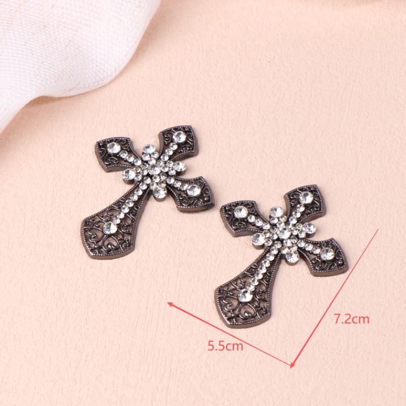 2/10Pcs Vintage Cross Crystal Center Flatback Rhinestone Decorative Accessories For Diy Brooch Craft Making