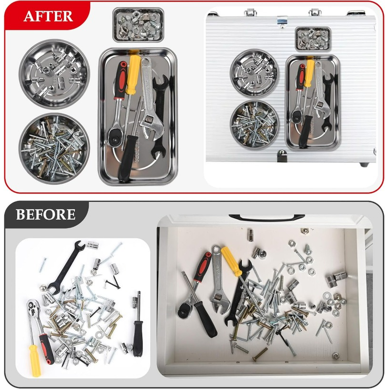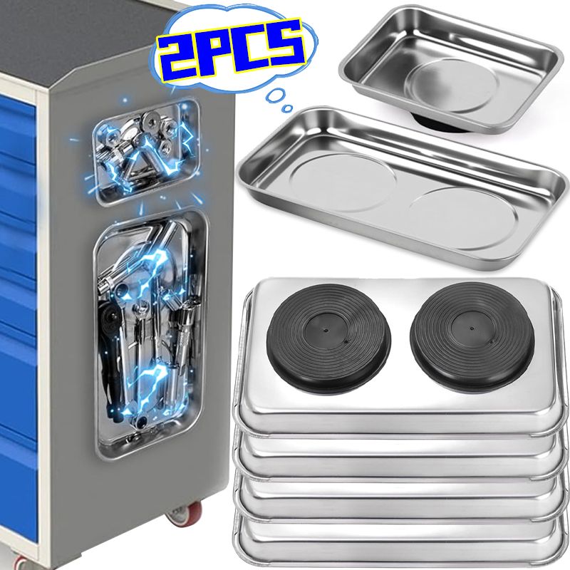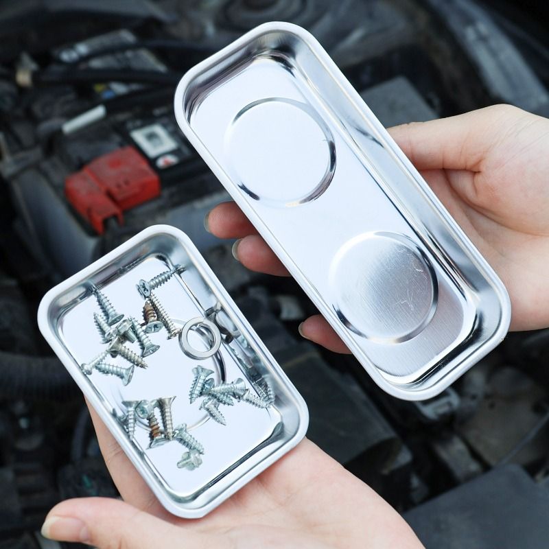 2/1Pcs Magnetic Tray Stainless Steel Magnetic Parts Round and Rectangular Trays Screw Wrench Organizing Hardware Accessories