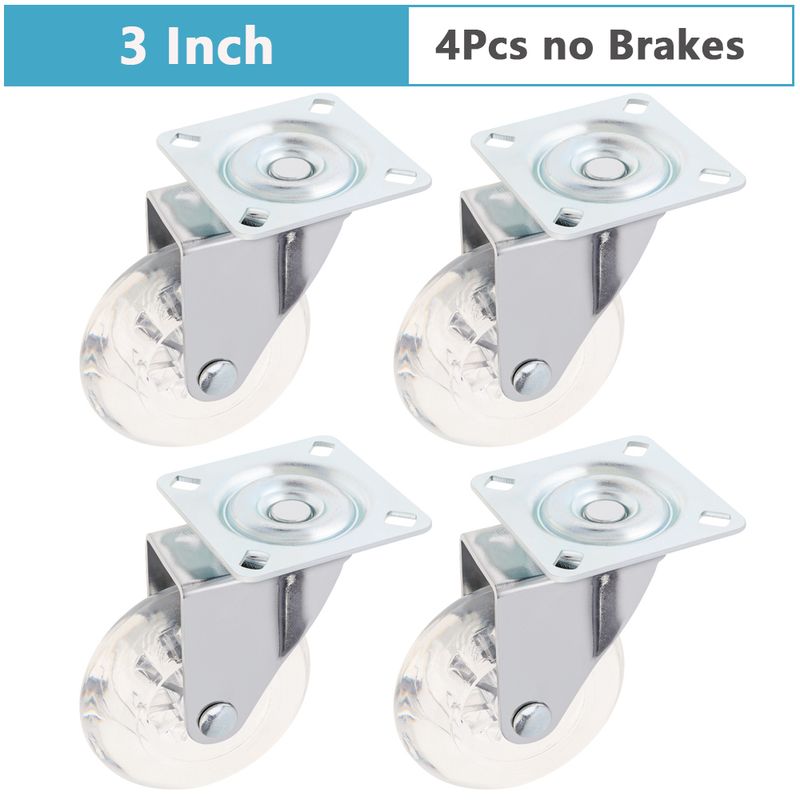 2/3 Inch 4Pcs PU Crystal Universal Caster Wheels Set Transparent Brake Wheels For Carts Dressers Platform Trolley Chair Tools