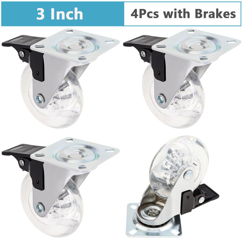2/3 Inch 4Pcs PU Crystal Universal Caster Wheels Set Transparent Brake Wheels For Carts Dressers Platform Trolley Chair Tools