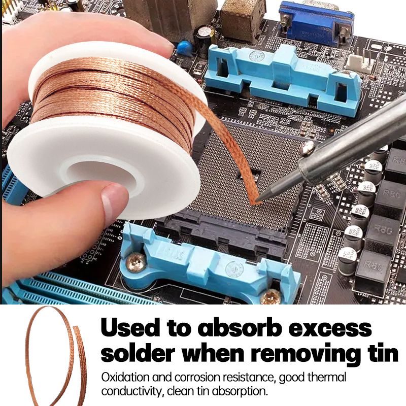 【Easy to use】Desoldering braid is used to absorb excess solder when removing tin, the fine woven design promotes strong capillary action to suck in excess solder. The main board desoldering spot is removed, and it is used with the soldering station.