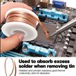【High-quality materials】The solder wick is geometrically precisely braided with high-quality copper wire, which is resistant to oxidation and corrosion, has good thermal conductivity, low residual and no halide, and clean tin absorption.