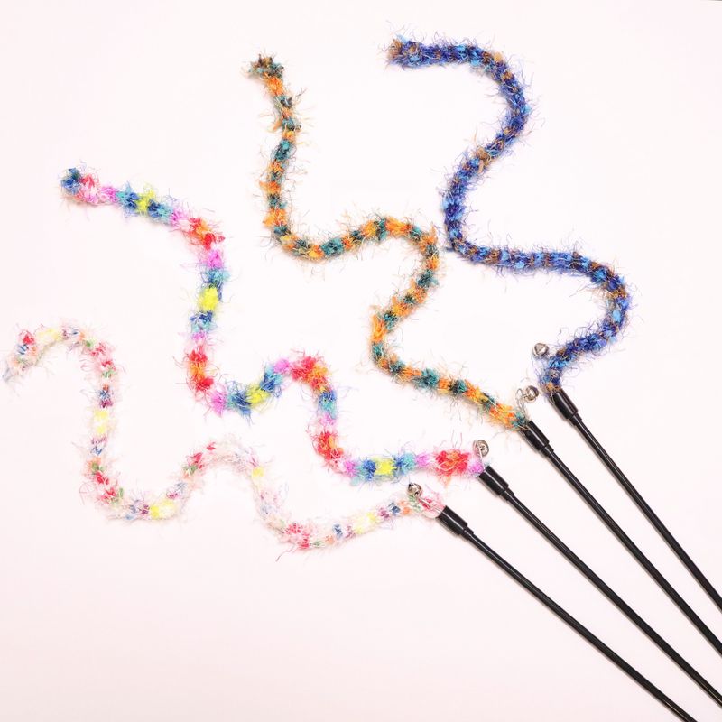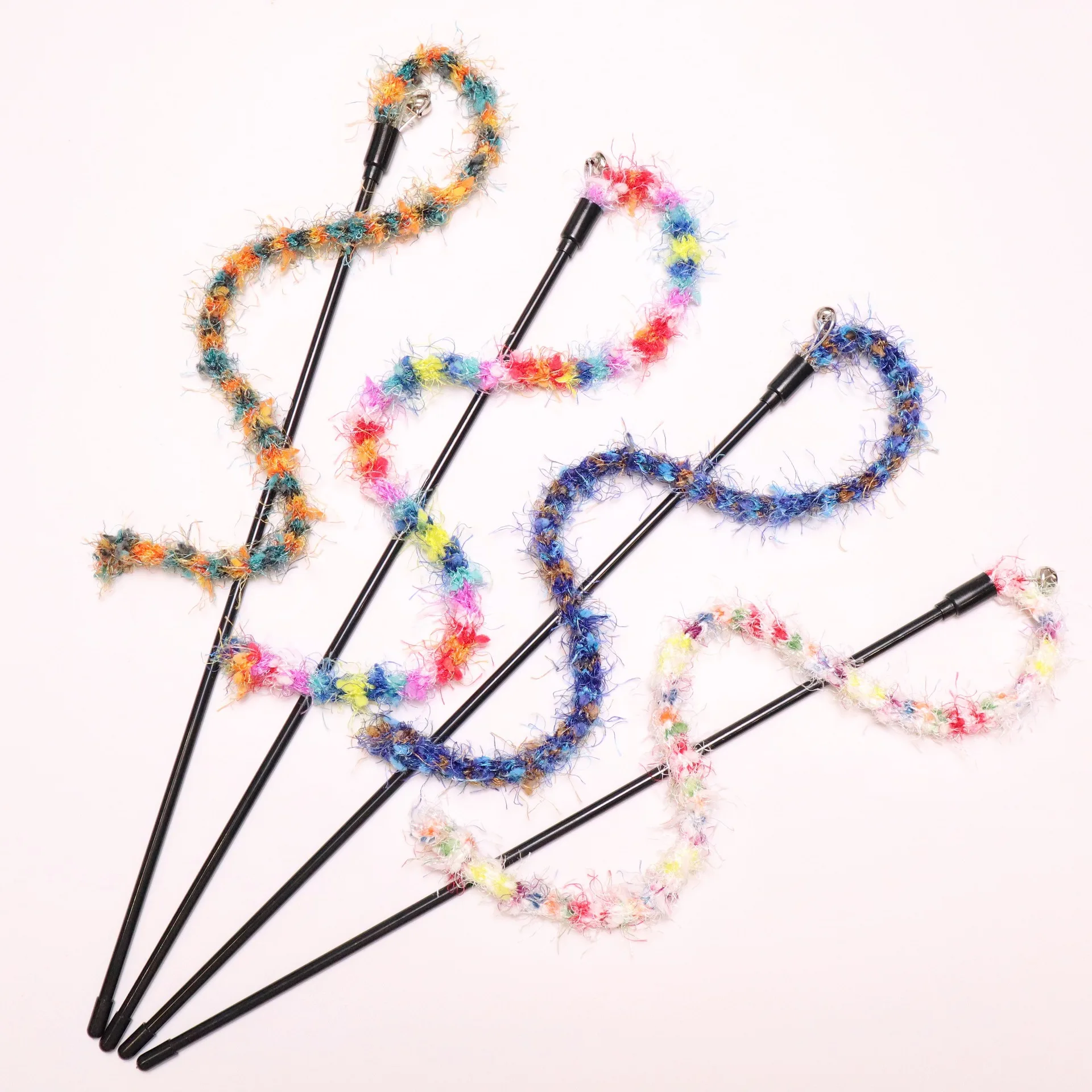2/3/4pcs Colorful Striped Plush Rope Cat Teasing Stick Toy Knitting Wool Pet Toys