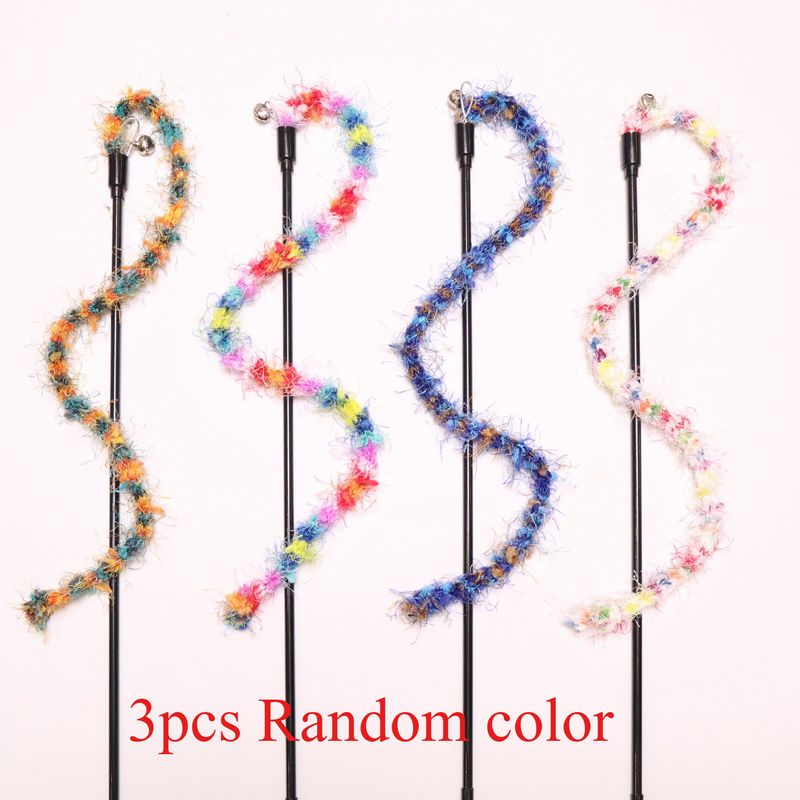 2/3/4pcs Colorful Striped Plush Rope Cat Teasing Stick Toy Knitting Wool Pet Toys