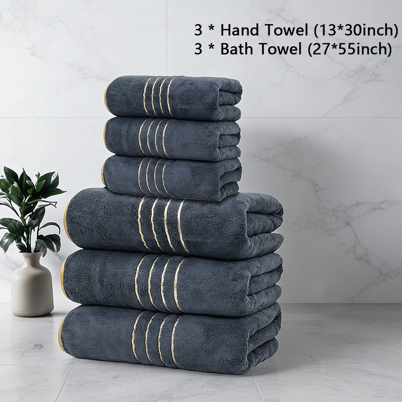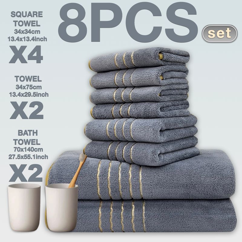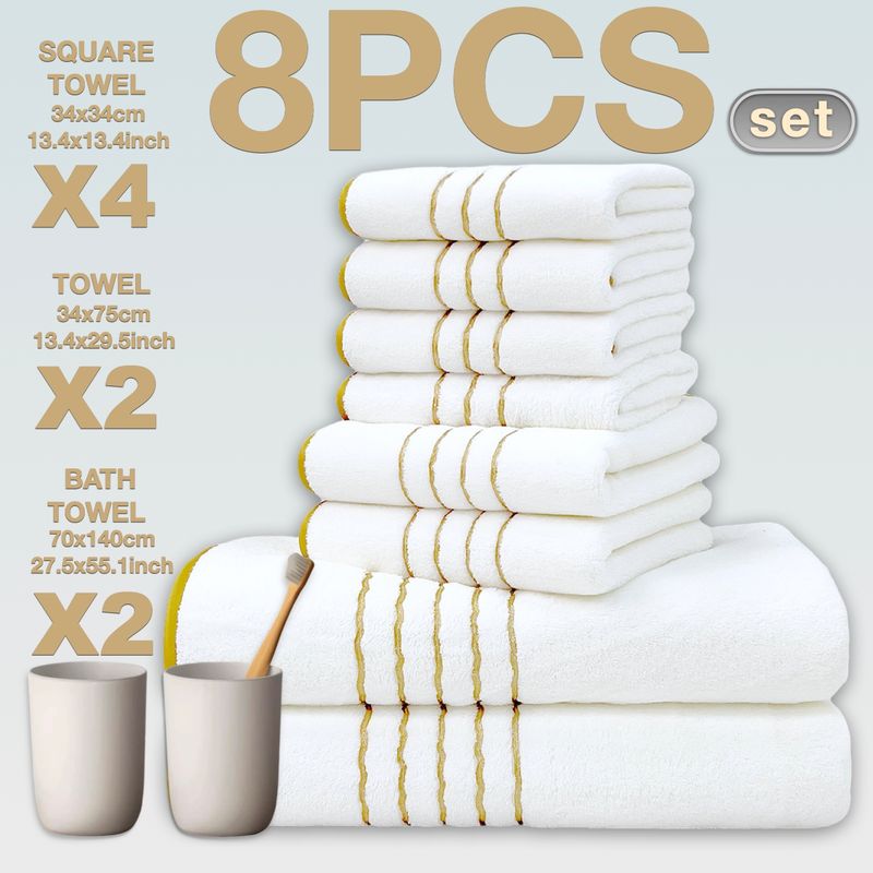 2/3/6/8 Pcs Bath Towel Set White & Gray with Gold Accents, Soft Absorbent Premium Towels for Home, Hotel & Bathroom