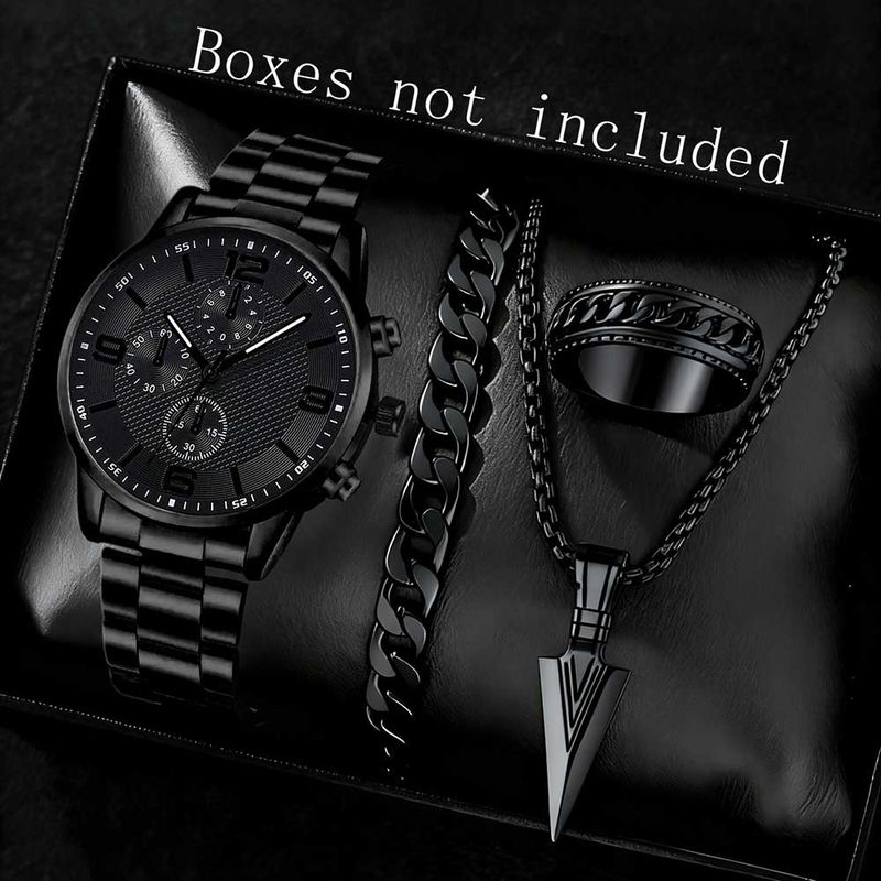 2/4PCS Men's Watch Set Business Trend Fashion Classic Three Eye Quartz Watch Bracelet Necklace Ring Set Perfect Gift