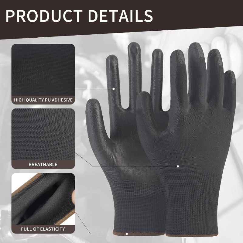 2/6Pairs Work Safety Gloves PU Coated Safety Gloves with Grip Light Duty Seamless Knit Gloves for Industrial Warehouse Assembly