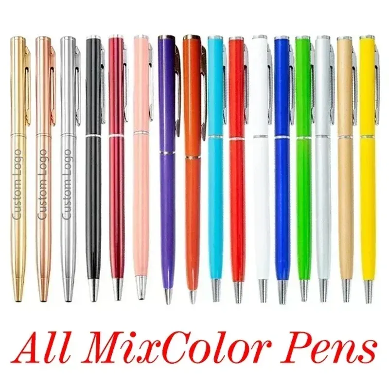 20-200 Pens New Slim Metal Ballpoint Pens Rose Gold Custom Logo Advertising Lettering Engraved Name School Office Supplies Gifts
