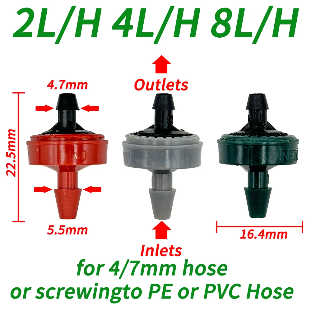 20-50pcs Greenhouse 8L/H Adjustable Dropper Flow Pressure Compensating Dripper 2L/H 4L/H Emitter Drip Irrigation System Garden