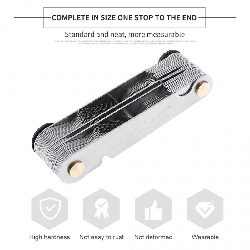 - METRIC thread is also known as international metric thread. Metric thread has ordinary thread (tooth angle 60 °); Trapezoidal thread (profile angle 30 °); Serrated thread (profile angle 33 °); Square thread, etc.(This product is suitable for 60 degree ordinary thread).