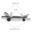 Metric (mm) - 60°: 6.0, 5.5, 5.0, 4.5, 4.0, 3.5, 3.0, 2.5, 2.0, 1.75, 1.5, 1.25, 1.0, 0.9, 0.8, 0.75, 0.7, 0.6, 0.5, 0.45, 0.4, 0.35, 0.3, 0.25.