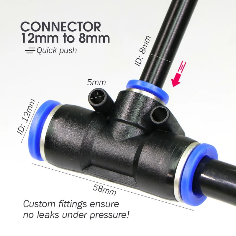 - The system features a main line of 3/8'' (9/12mm) PE water pipe, both made of durable PE material.   With a pressure resistance of up to 12 bar and resistance to heat and freezing temperatures, this system is designed for long-lasting performance.