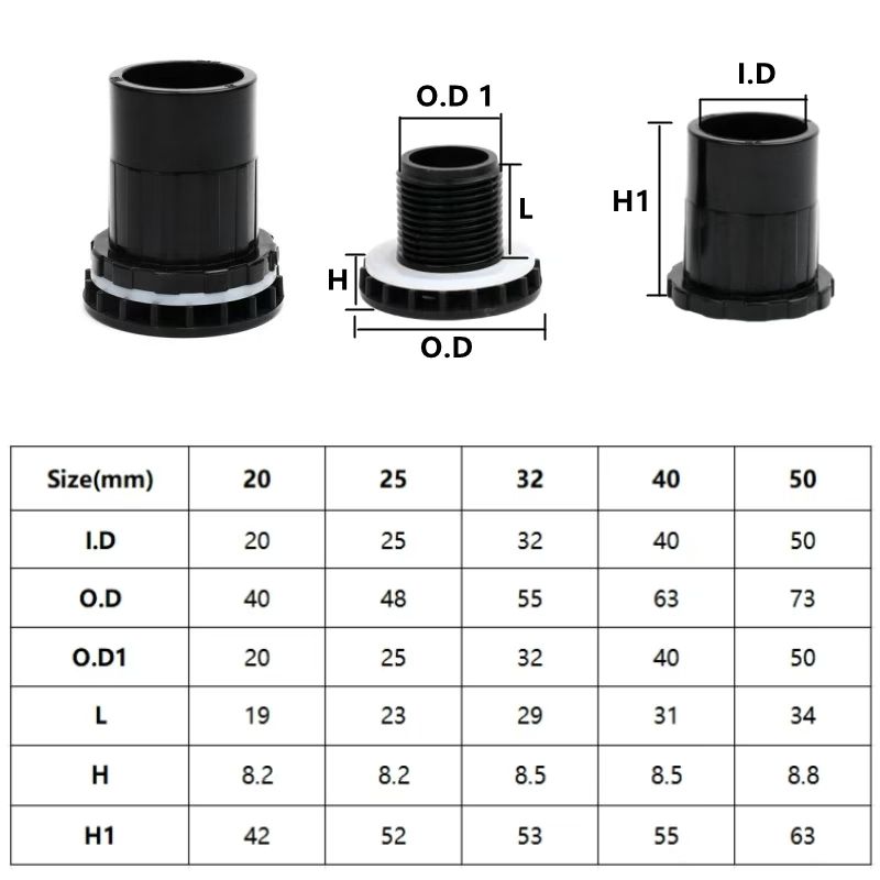 20-63mm Black PVC Pipe Connectors Ball valve Three-way Direct Garden Water Aquarium Fish Tank Drainage Tube Fittings Accessories