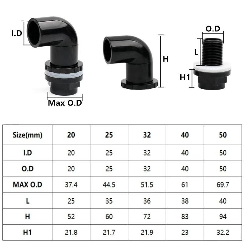 20-63mm Black PVC Pipe Connectors Ball valve Three-way Direct Garden Water Aquarium Fish Tank Drainage Tube Fittings Accessories