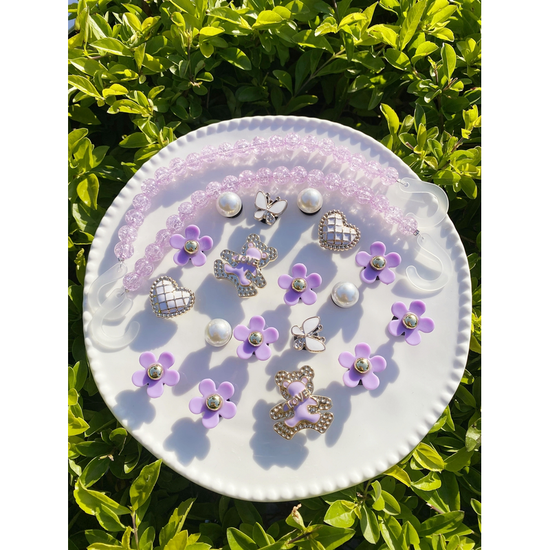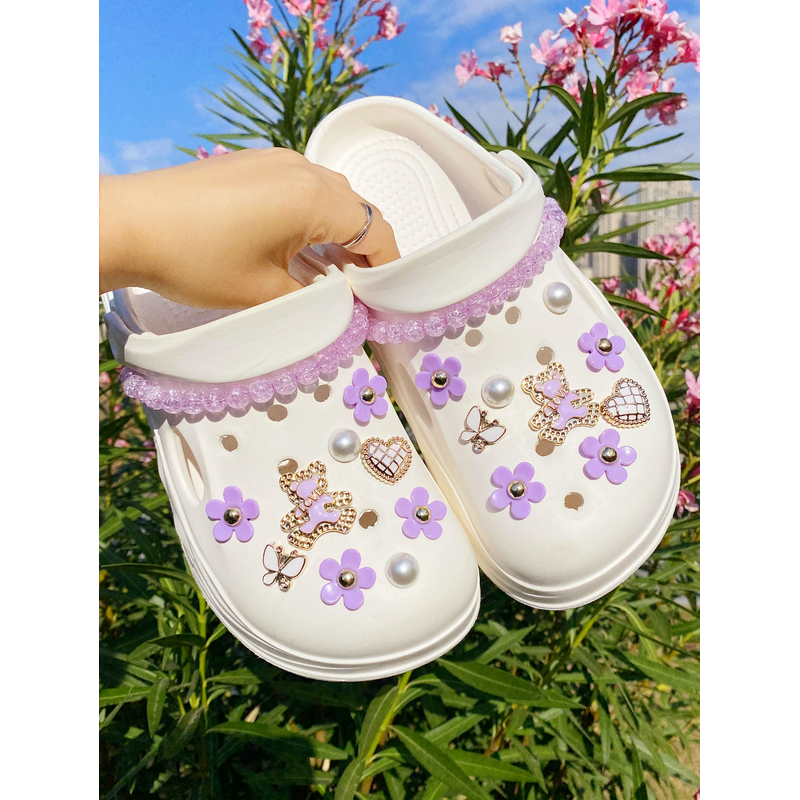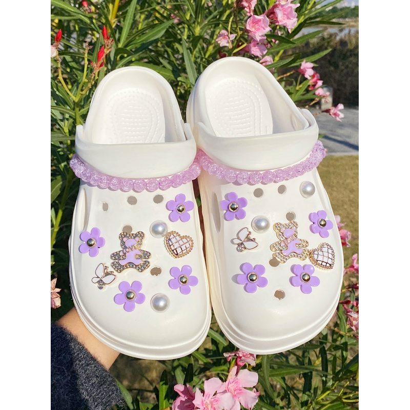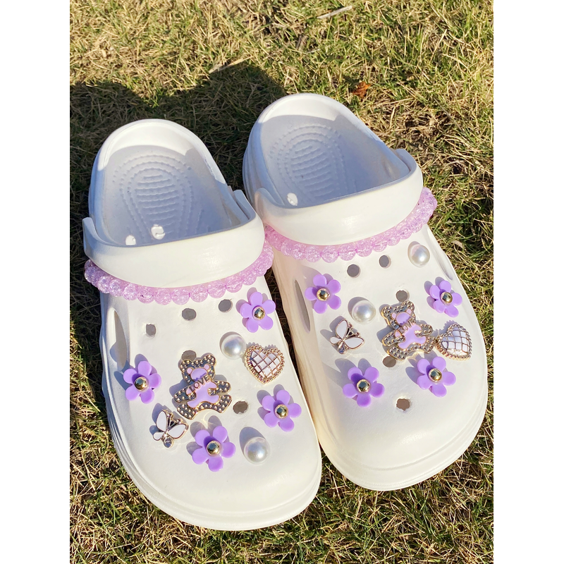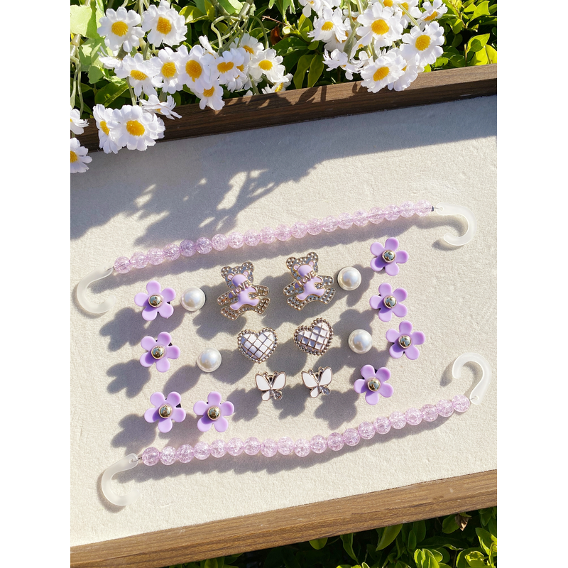 20 fashionable purple love bear, butterfly, flower, broken bead chain Crocs accessory ABS shoe flower, DLY decoration suitable f