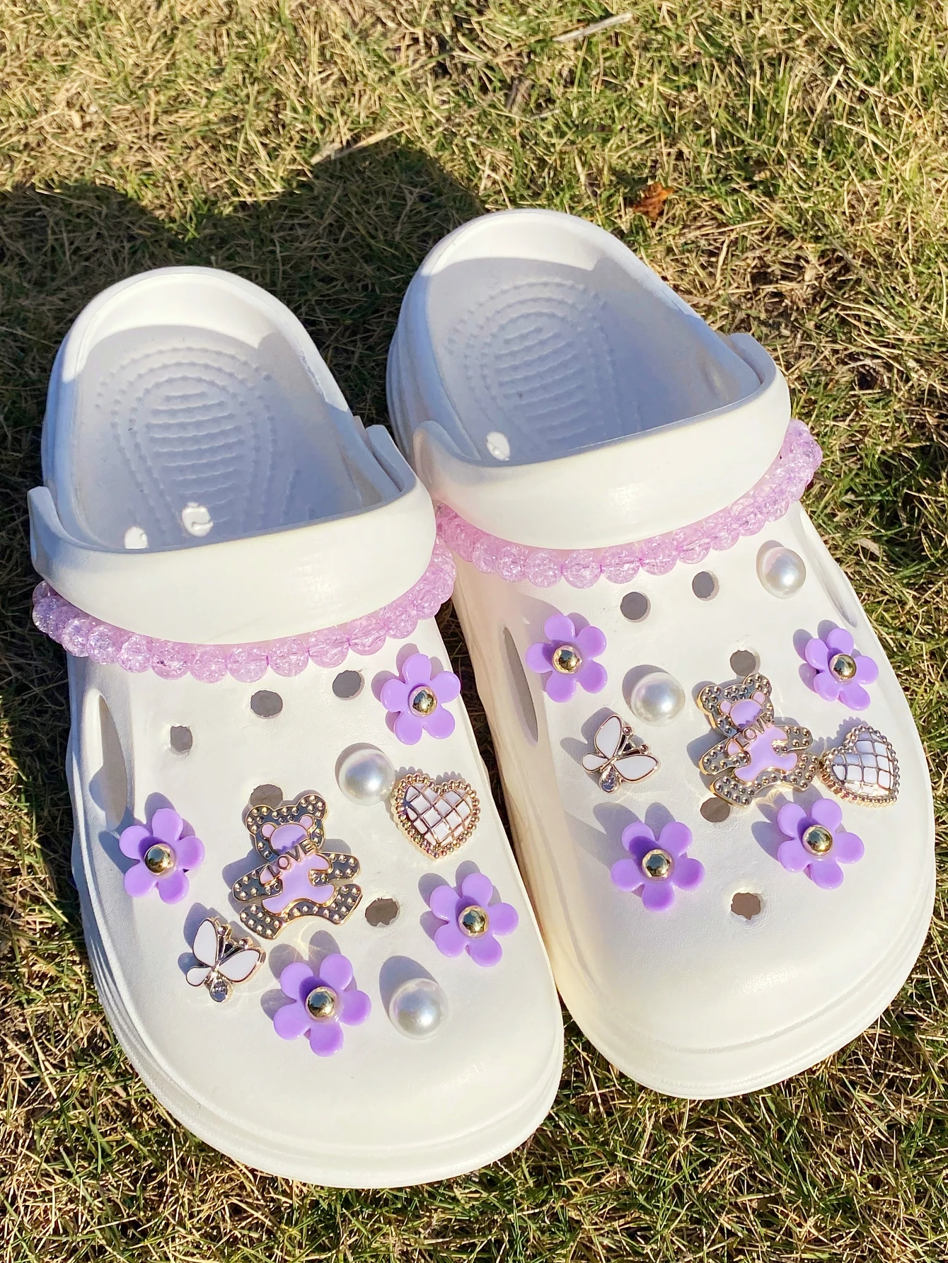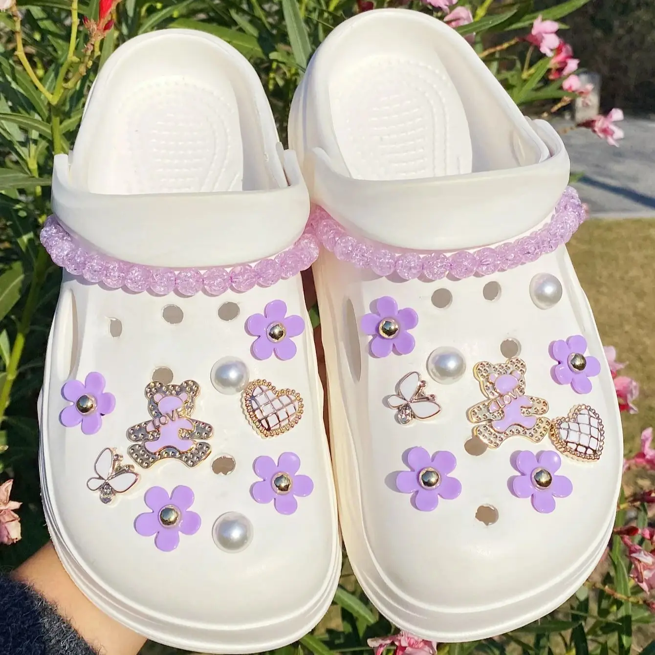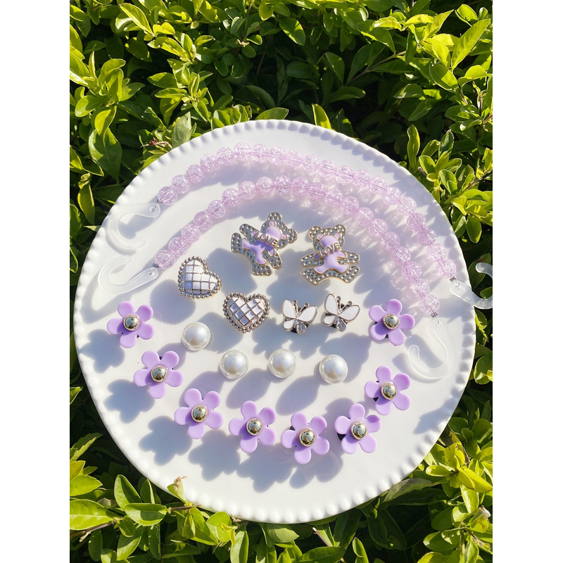 20 fashionable purple love bear, butterfly, flower, broken bead chain Crocs accessory ABS shoe flower, DLY decoration suitable f