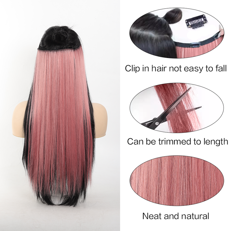 20 Inch Long Synthetic Straight Clip-In Hair Extensions for Women - Vibrant Colors, Synthetic Fiber, Easy to Use