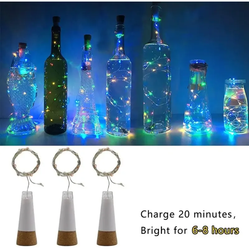 20 LEDs Cork Bottle Fairy Lights USB Rechargeable Christmas Garland String Lights for Bedroom Room Home Wedding Party Decoration