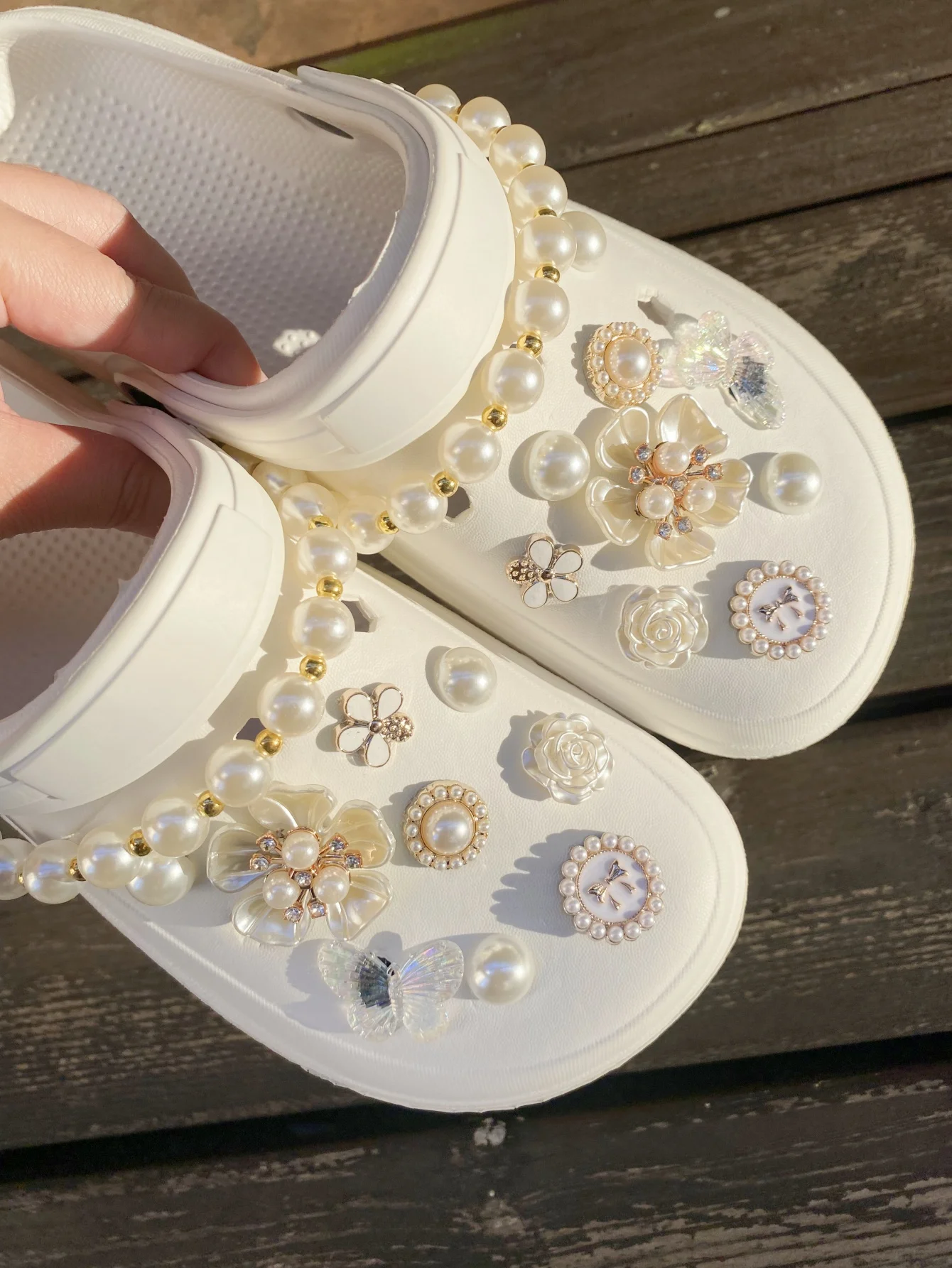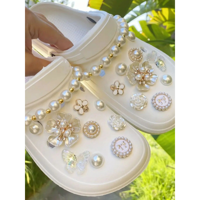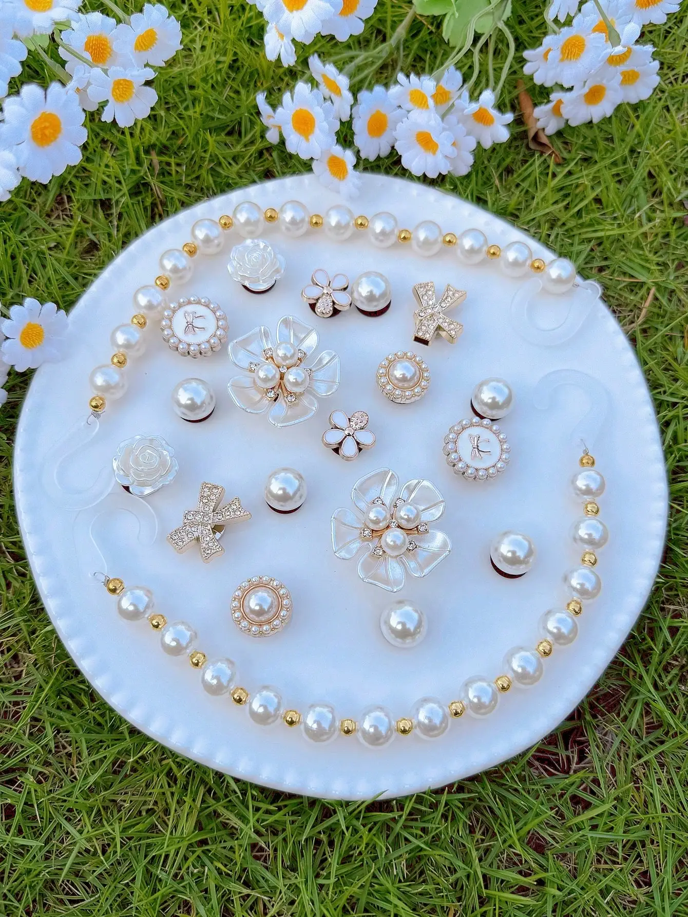 20 pieces of hole-patterned shoe accessories: casual camellia flowers, small white flowers, small butterflies, beige rose-patter