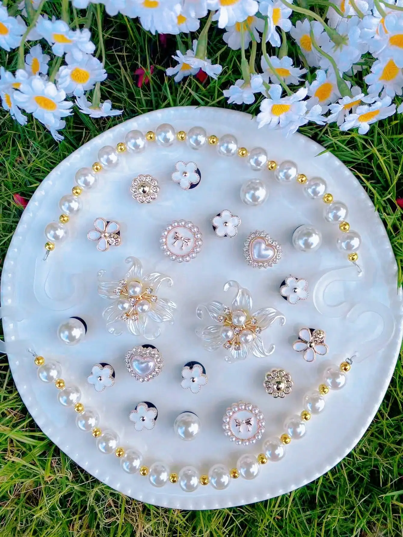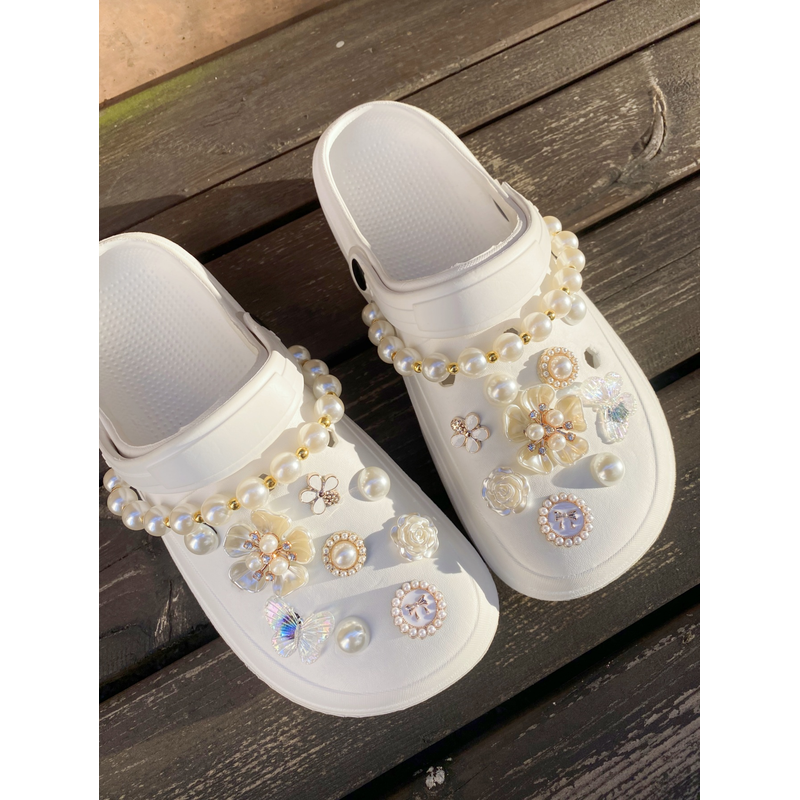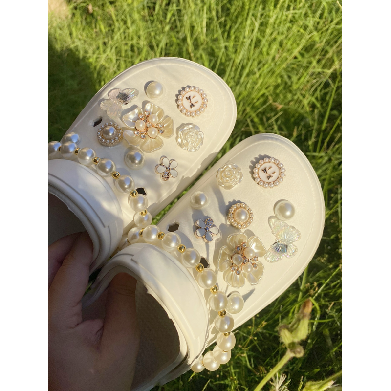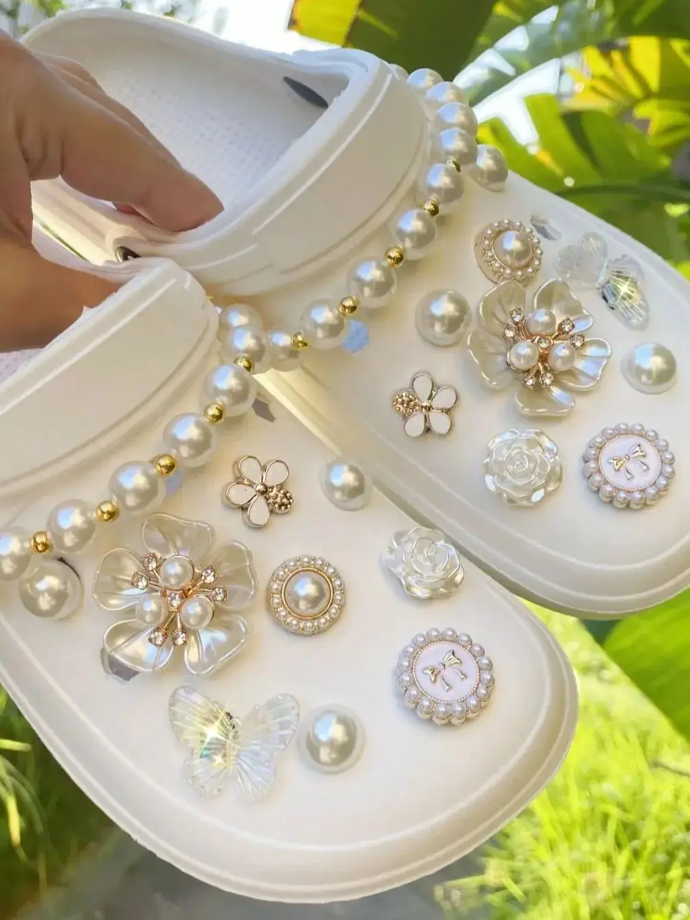 20 pieces of hole-patterned shoe accessories: casual camellia flowers, small white flowers, small butterflies, beige rose-patter