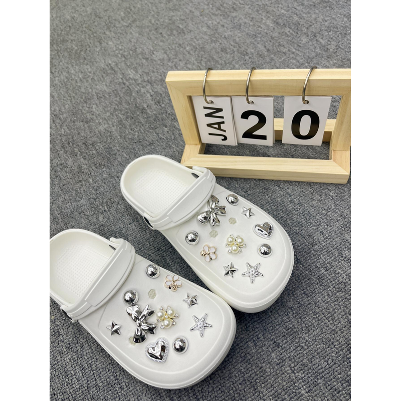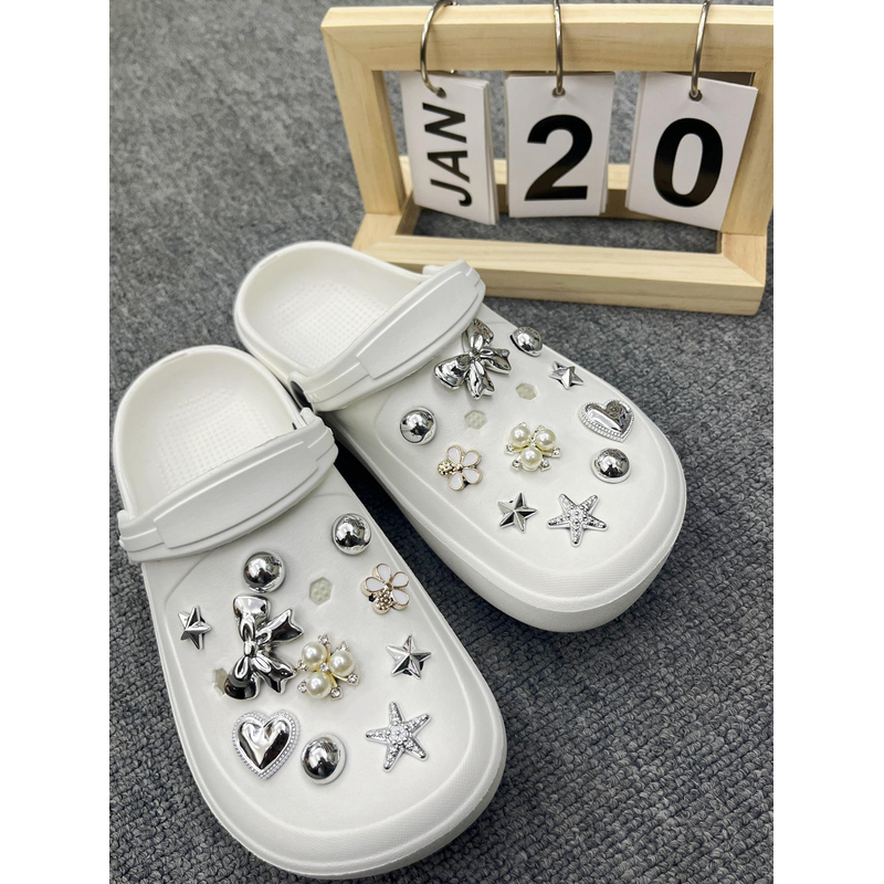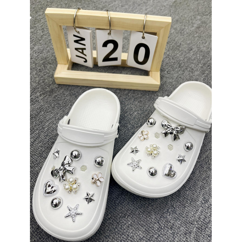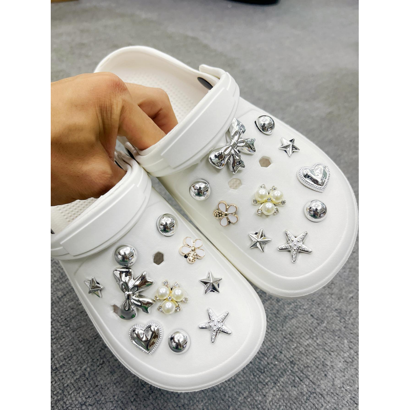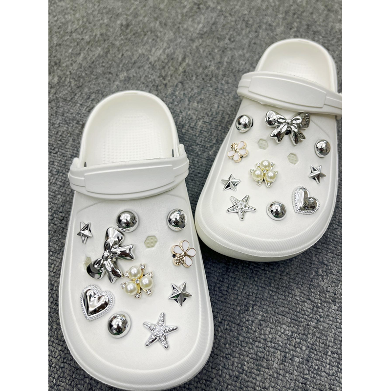 20 pieces/set garden shoes Shoe flower accessories Removable electroplated bow shoe flower, shoe accessories for Crocs beach sho