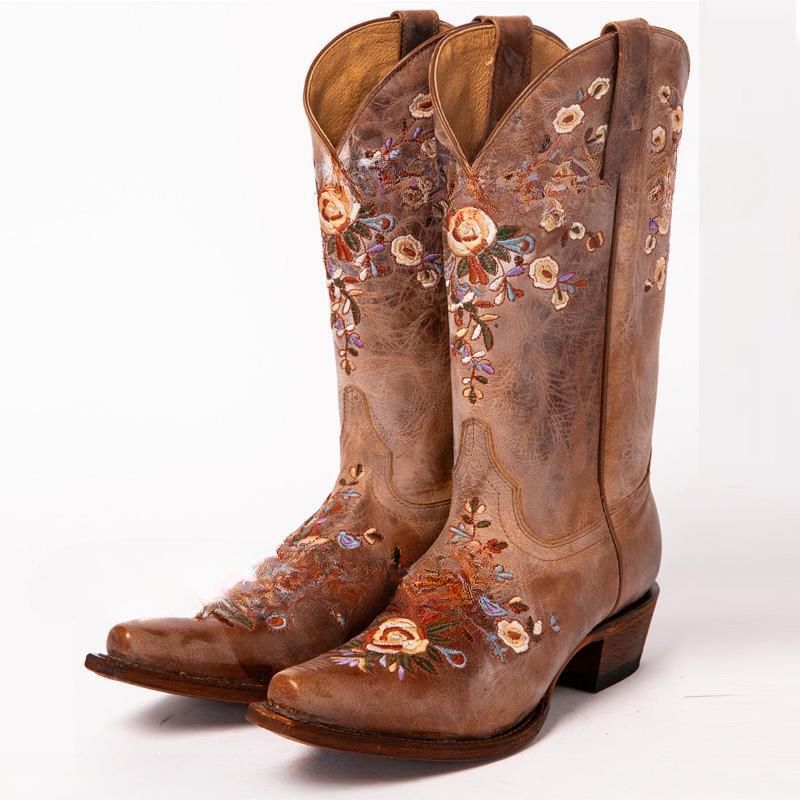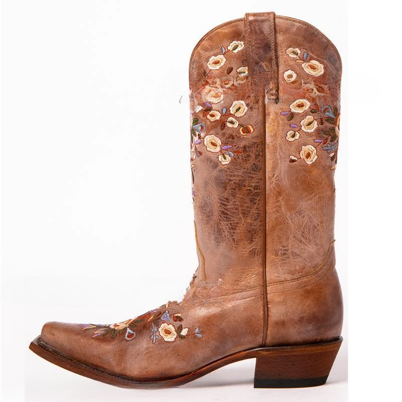 20 Women's Boots Knee High Neutral Retro Fashion Boots Square Heel Vintage Boots Embroidered Western Cowboy Bohemian Women Shoes