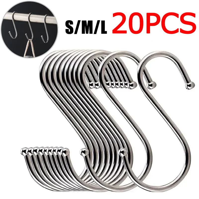 20/10Pc S-Shape Hook Stainless Steel Clothes Bags Towel Plant Hanging Rack Multi-function Kitchen Bedroom Railing S Hanger Hooks