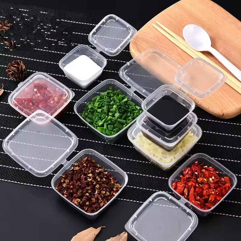20/1pcs 25ml 70ml 100ml Disposable Plastic Takeaway Sauce Cup Containers Food Box with Hinged Lids Pigment Jewelry Box Reusable