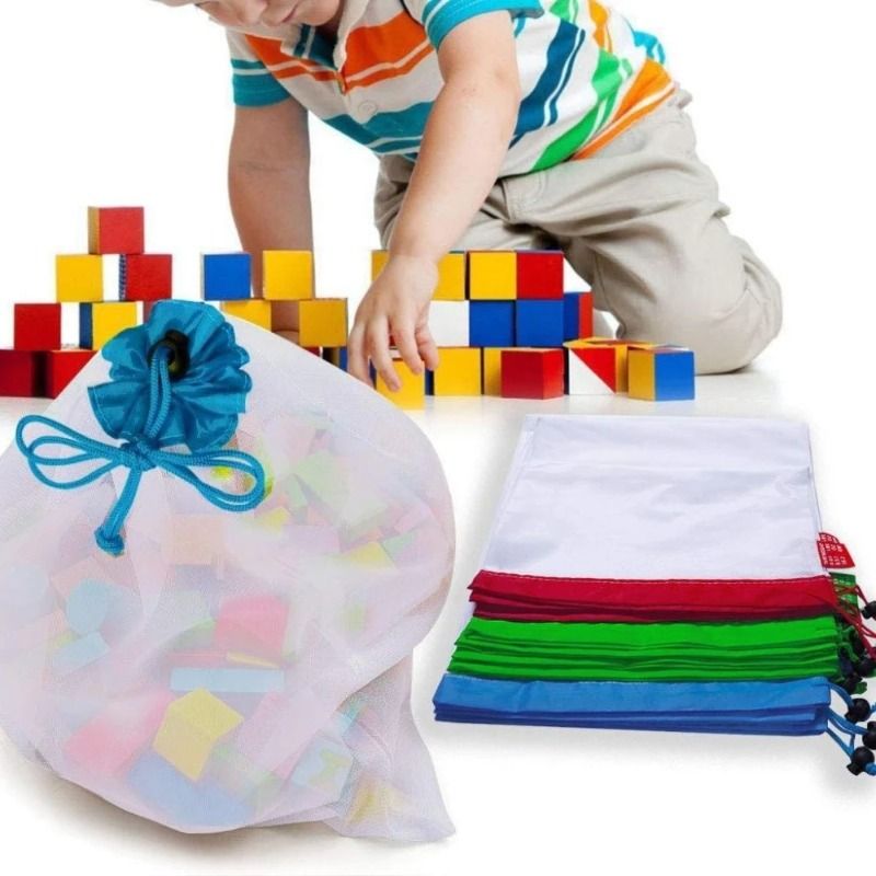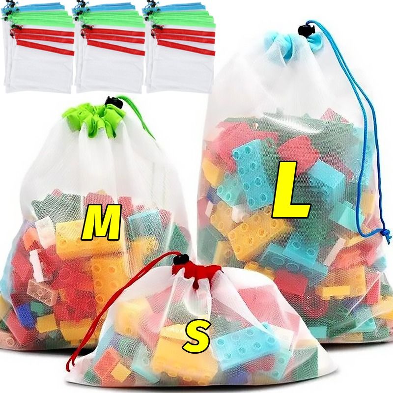 20/1pcs Mesh Drawstring Storage Bags Reusable Washable Toy Bags Organizer for Building Blocks Pouch Kitchen Fruit Vegetable Bag