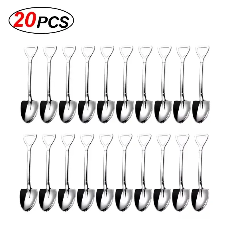 20/2x Stainless Steel Shovel Spoons Gold Silver Mini Coffee Teaspoon Fruit Ice Cream Dessert Spoon Scoops Kitchen Tableware Set