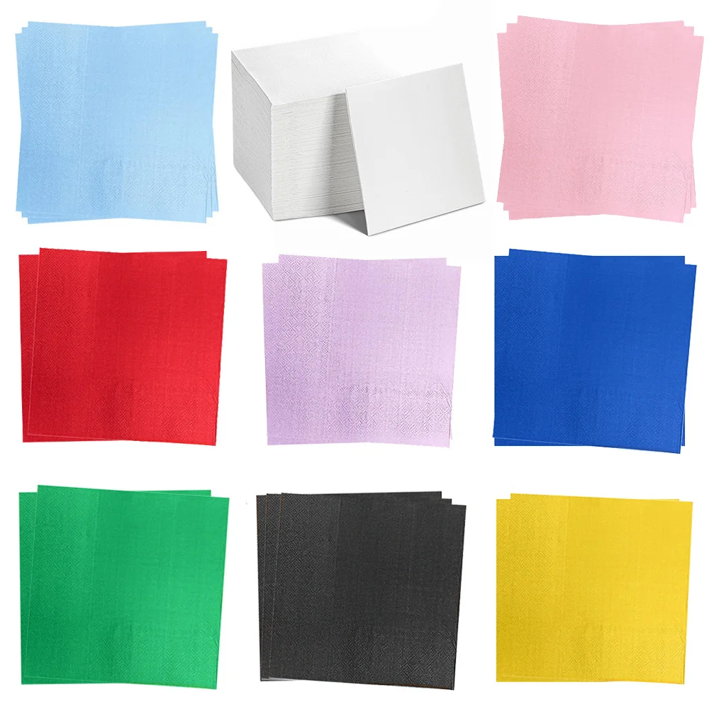 20/40/60/80/100pcs Solid Color Disposable Paper Napkins Pink Red Blue Yellow Green White Black Purple Birthday Party Decorations