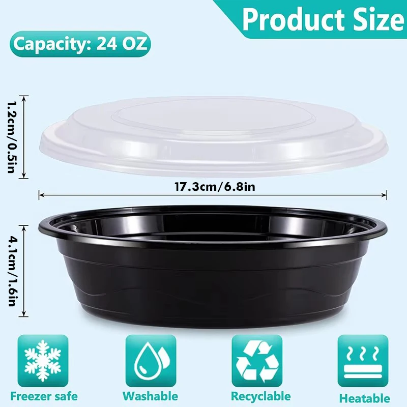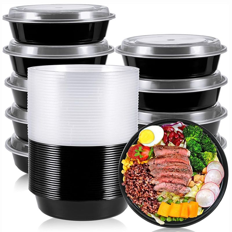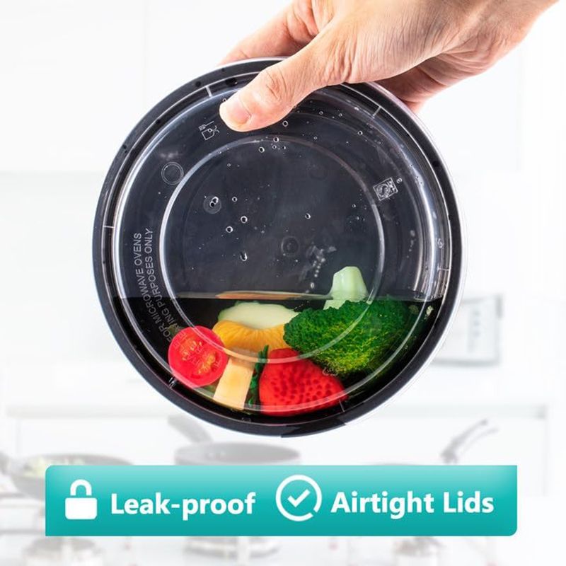 Our round meal prep containers with lids are sturdy for long-term use. The leakproof lids prevent spilling. These to go containers are recyclable and eco friendly. Making them as your food storage containers, to go containers or meal prep containers.