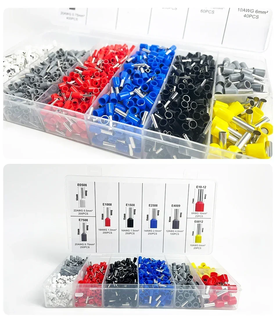 200-1900Pcs Electrical Tube Insulated Terminal VE Tubular Crimp Terminals Wire Cable Connector Ferrules Terminal Connectors