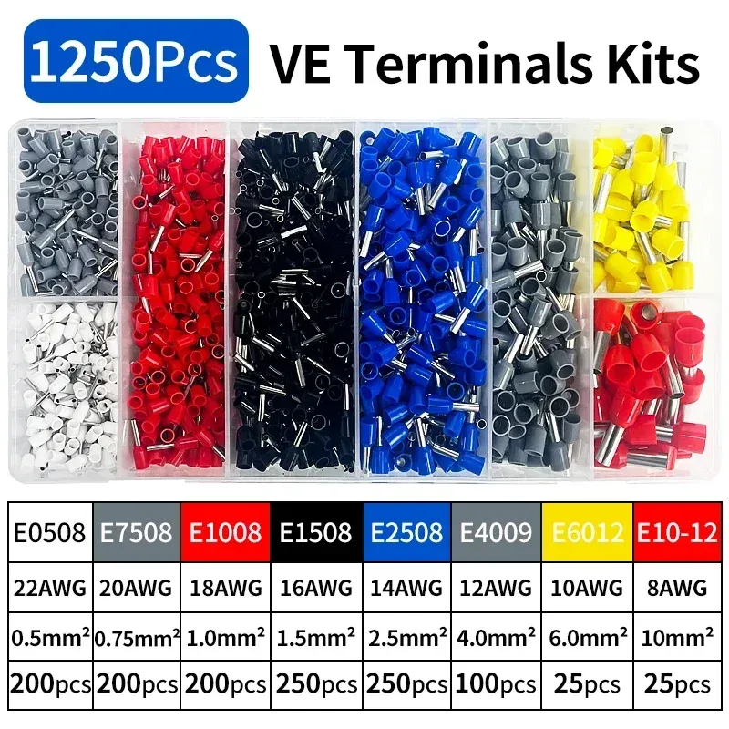 200-1900Pcs Electrical Tube Insulated Terminal VE Tubular Crimp Terminals Wire Cable Connector Ferrules Terminal Connectors