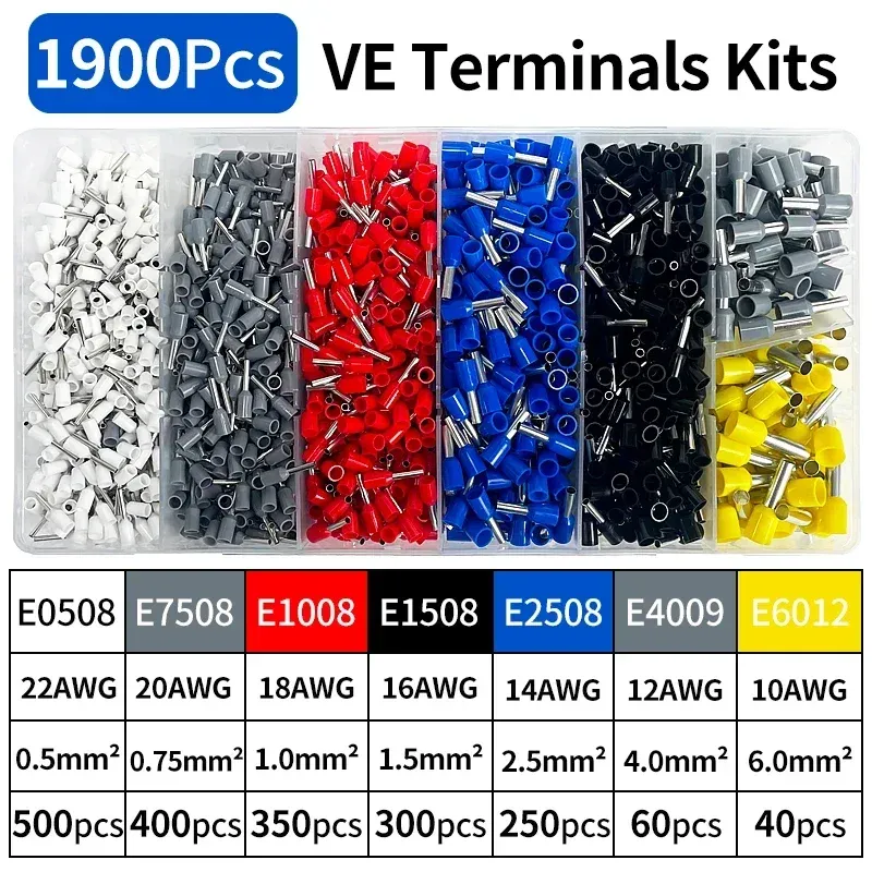 200-1900Pcs Electrical Tube Insulated Terminal VE Tubular Crimp Terminals Wire Cable Connector Ferrules Terminal Connectors